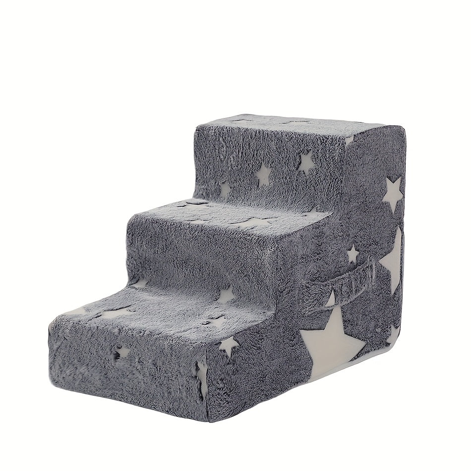3-step Dog Stairs 3-step Dog Stairs For Small & Medium Dogs - Non-slip Removable Pet Steps With Soft Sponge Material, Cartoon Design & Star Pattern, Durable Pet Bed For Indoor/outdoor Use, Easy To