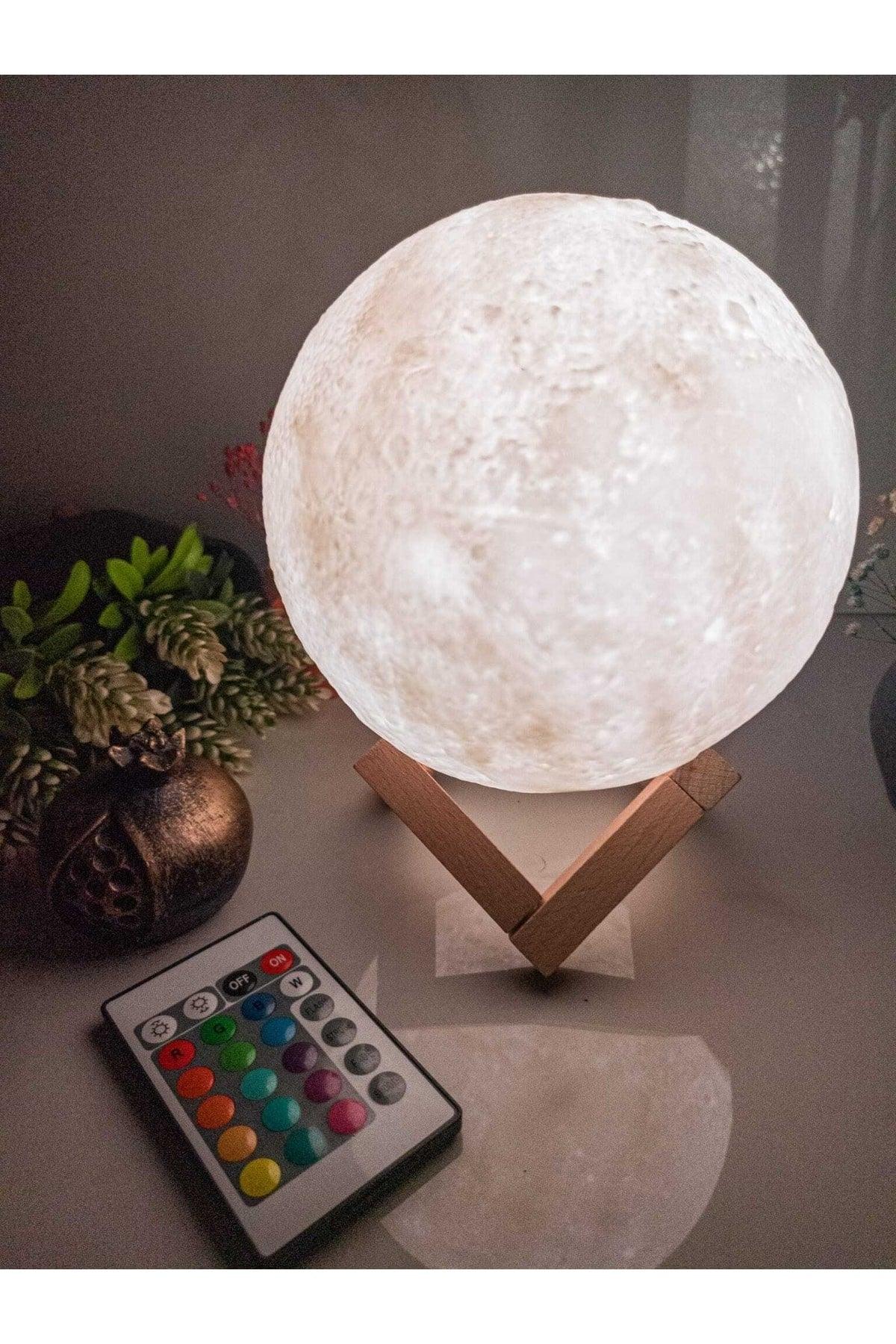 3d realistic moon lamp is remote controlled. with 16 different rgb colors, you can switch to main colors or tones from the controller. you can increase or decrease the amount of light with the brightness adjustment. the product is touch-sensitive and when you touch the product, the color / mode switches. the product's controller + cable + table bracket is available in the box. it is compatible with quick charge batteries. it is in the dimensions of a portable / easily replaceable product. the box of the product is 16x13 cm, the product itself is 13cm. the size of the product is in 3d decoration product standards. it is not small. it has a design that can be used as a decoration product in any part of your home, except for the night light. it has a design that can be used as a decoration product. 3d moon design is used, it is a realistic design product with indented protrusions. Create a party-ready atmosphere with this colorful LED lighting. Easy to install and perfect for events or home decoration.
