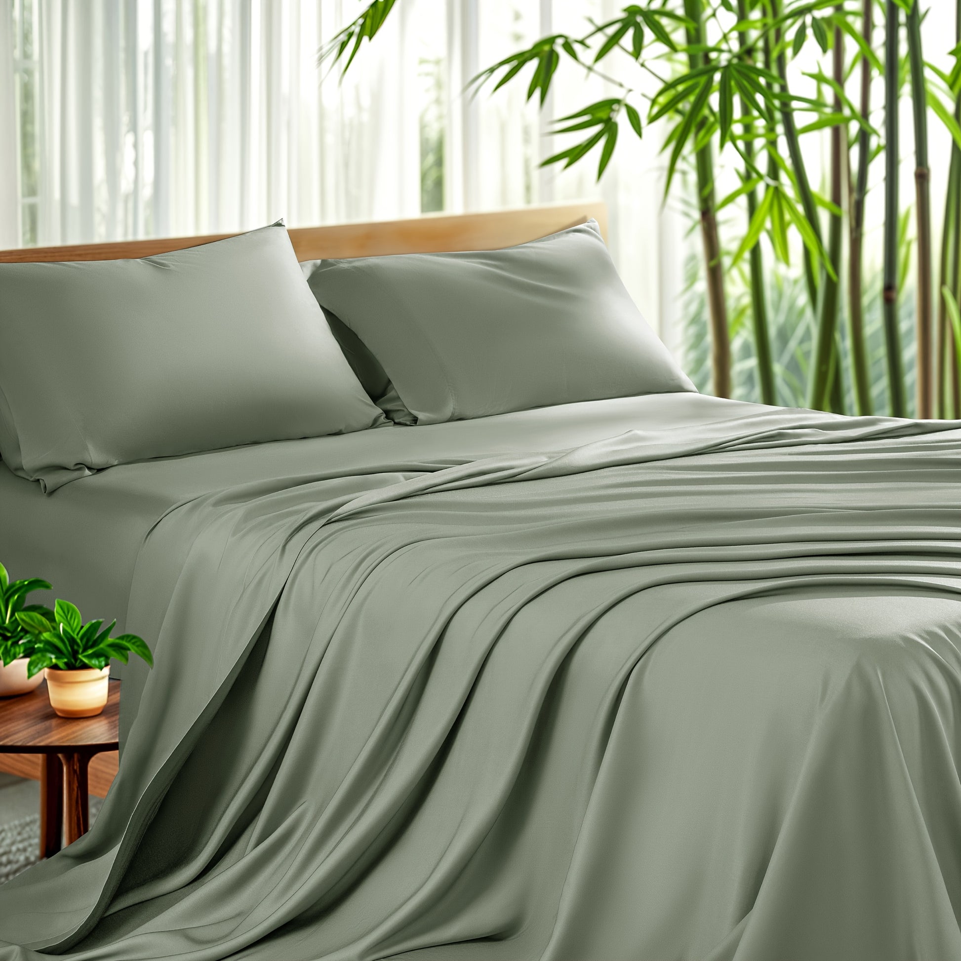 4pcs Bamboo Bed Sheet Set - Queen/King Size Deep Pocket (16" Fit), Wrinkle & Shrink Resistant, Hypoallergenic Bamboo Fabric, Cooling All-Season Sheets with Fitted, Flat & 2 Pillowcases - Hotel Qual...