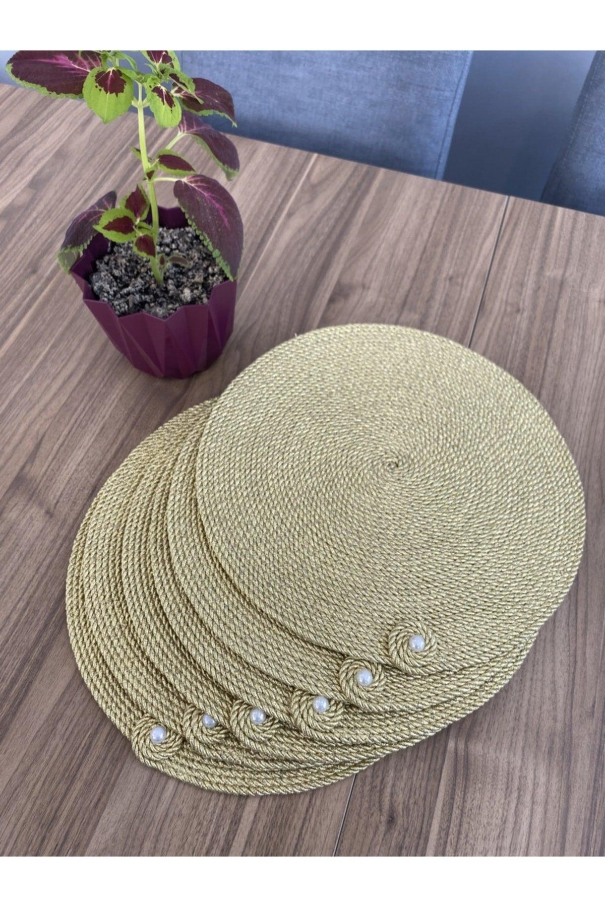 American 6 Pieces Silvery Mustard Wicker Service Runner Supla Knitted Plate Mat Non-Flammable Hand Washable