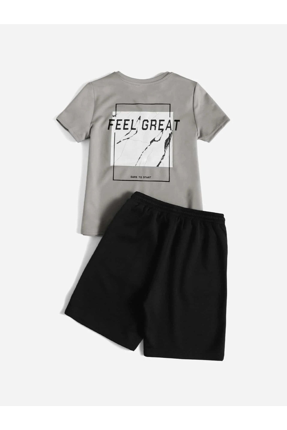 Black Dare To Start Printed Girls/Boys Shorts Set