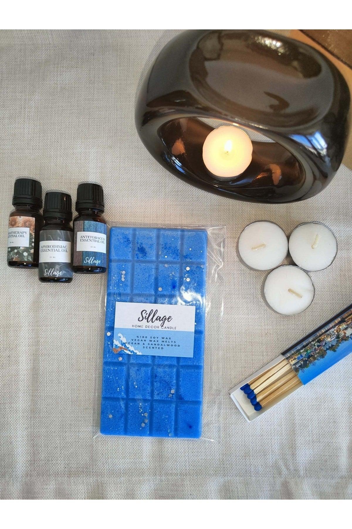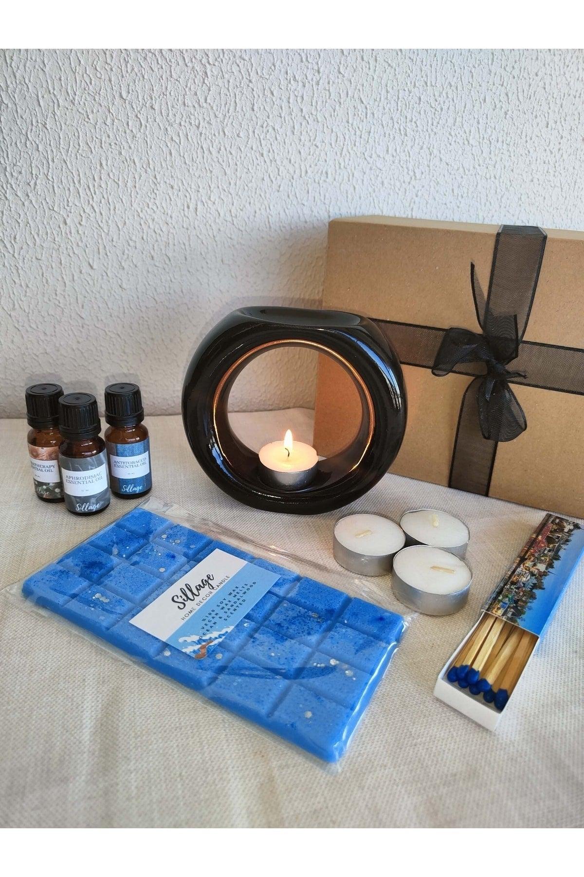 Set that will be a great gift alternative for yourself or your loved ones. you can benefit from the therapeutic power of fragrances with the censer tablet produced from completely natural oils and 100% soy wax. product content: 1. censer holder 2. 3 natural aromatherapy oil essences 3. 1 candle scent tablet made with 100% soy wax 4. 1 long match 5. 4 tlight candles. less than 5 stocks are available to be sold at the campaign price. Elegant candle with rich fragrance and stylish design. Suitable for home decor, gifts, or creating a peaceful atmosphere.