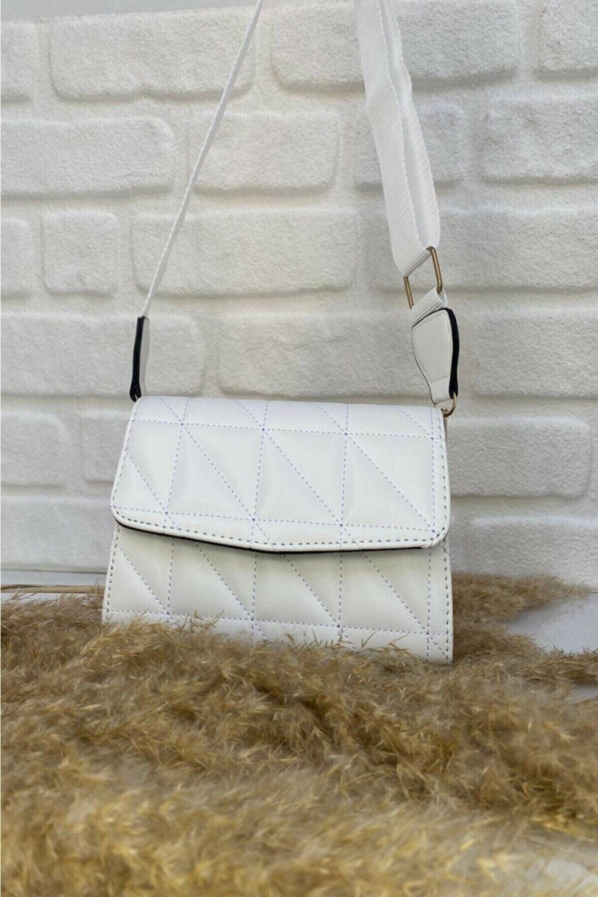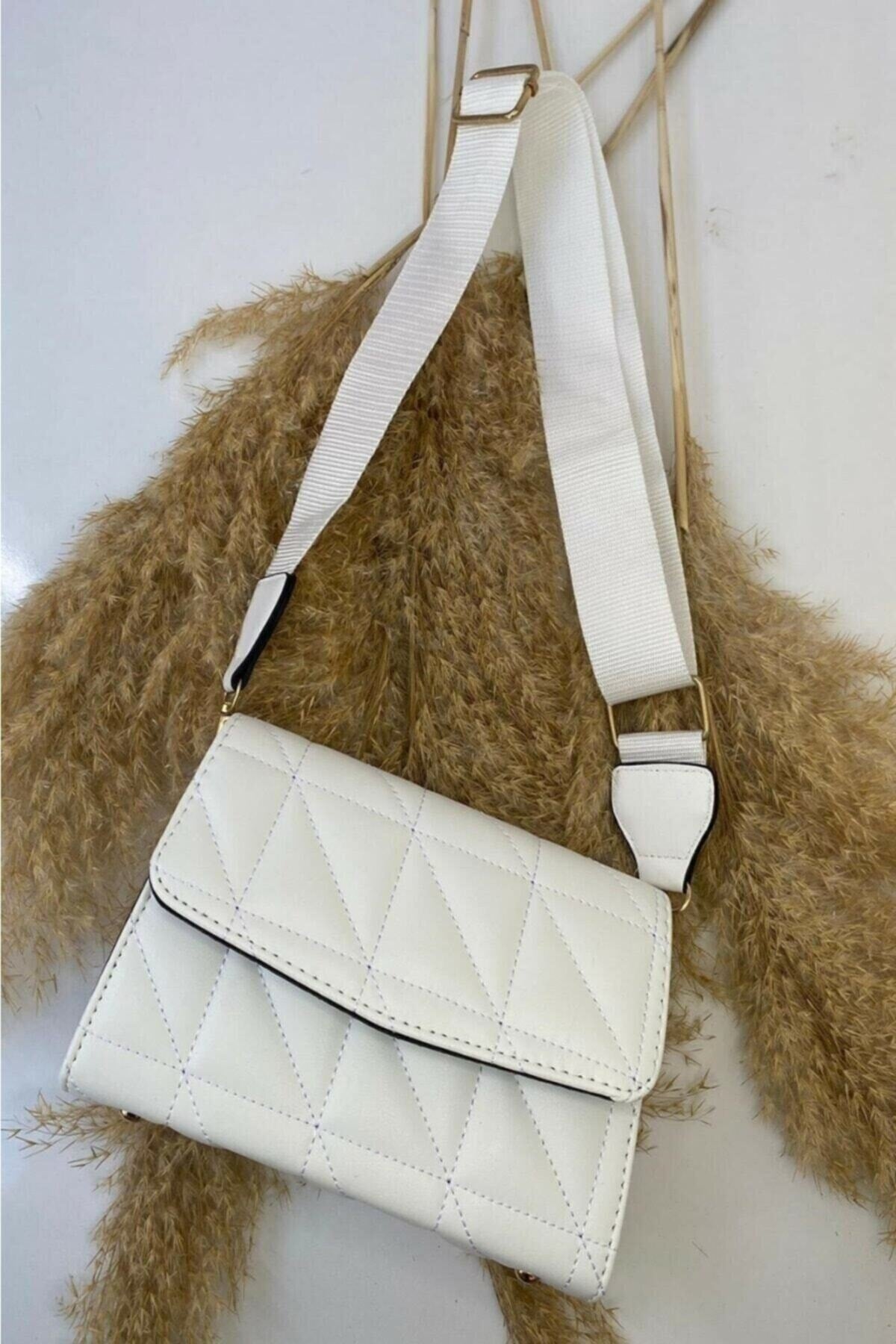 Ceyon Moda White Column Strap Quilted Women'S Shoulder Bag