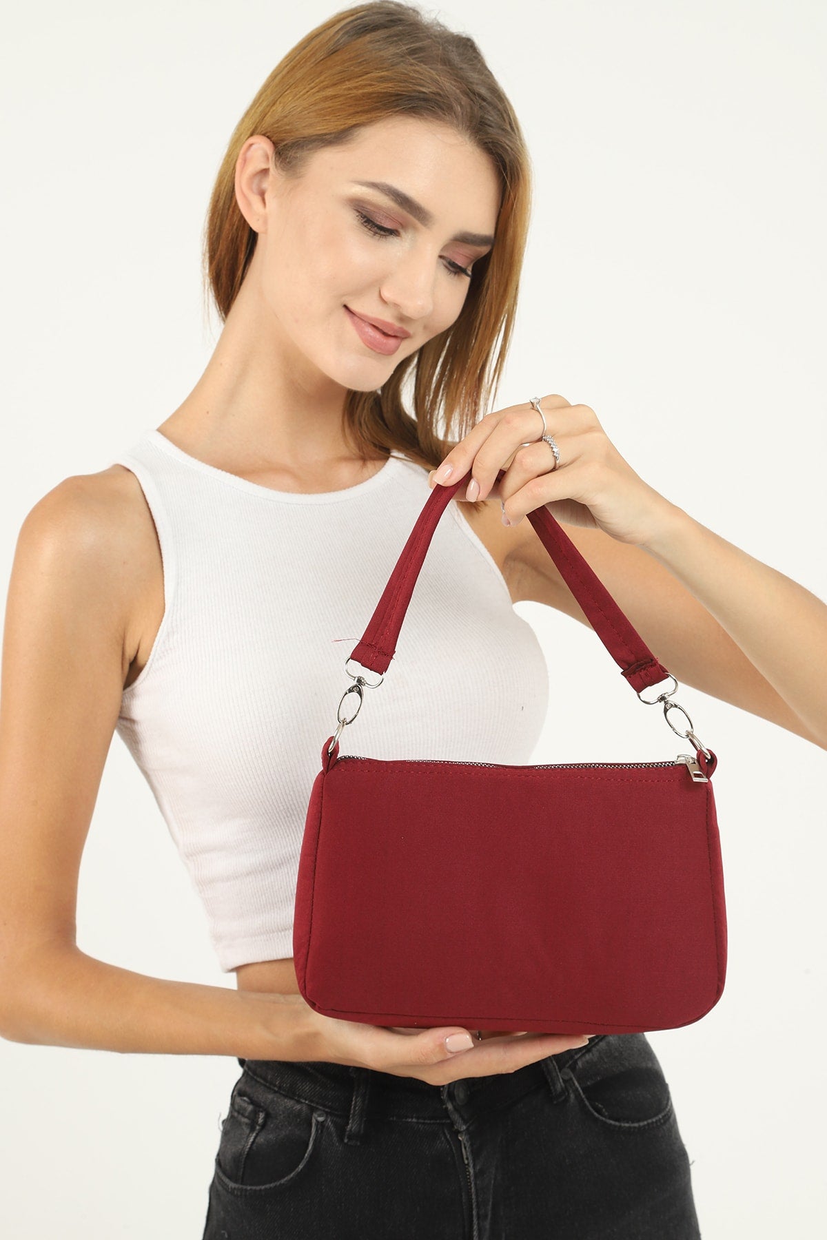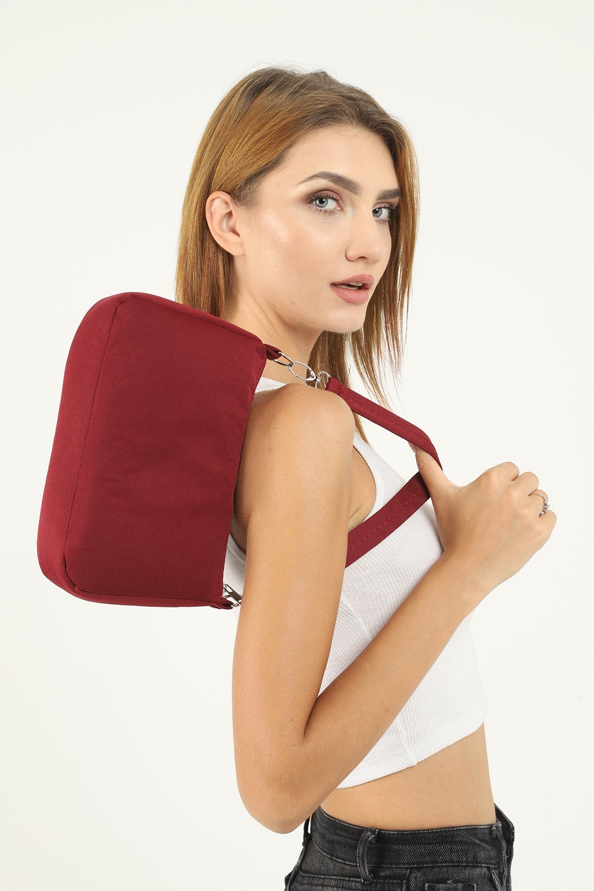 Claret Red U16 Daily Sport Canvas Fabric Baguette Women'S Hand And Shoulder Bag U:23 E:15 W:7
