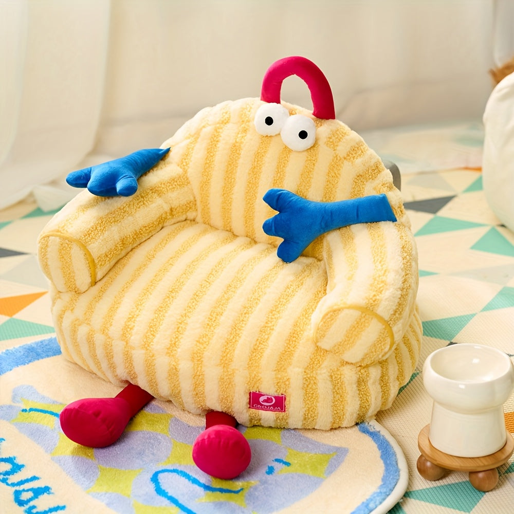 Cozy Pet Sofa Detachable, Washable Striped Pet Sofa For Cats & Small Dogs Trendy All-season Cozy Nest With Plush Ribbed Texture, Mixed Colors, Durable Polyester & Polypropylene Fiber Filling, Pet