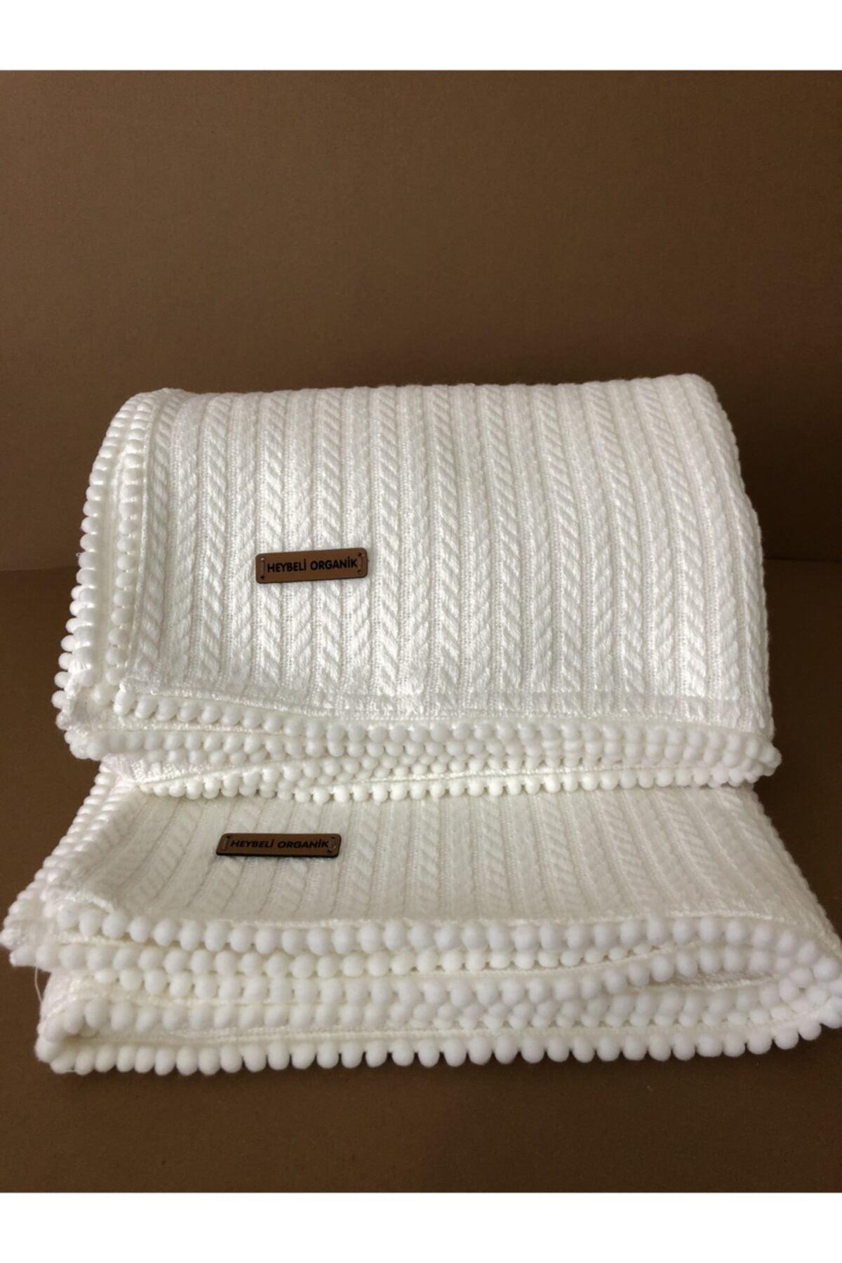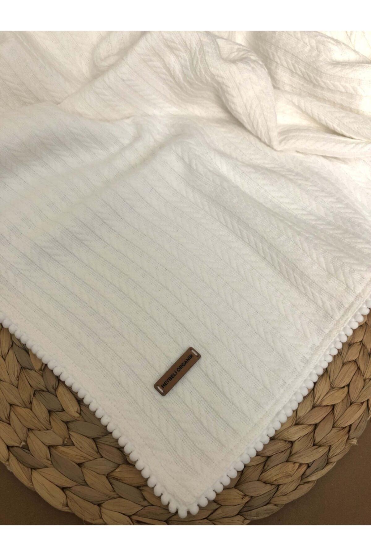 Cunda Series Knitted Pattern 100% Cotton Baby Pique Blanket Ecru // 110X100 Cm