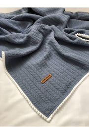 Cunda Series Knitted Pattern 100% Cotton Baby Pique Blanket Indigo // 110X100 Cm
