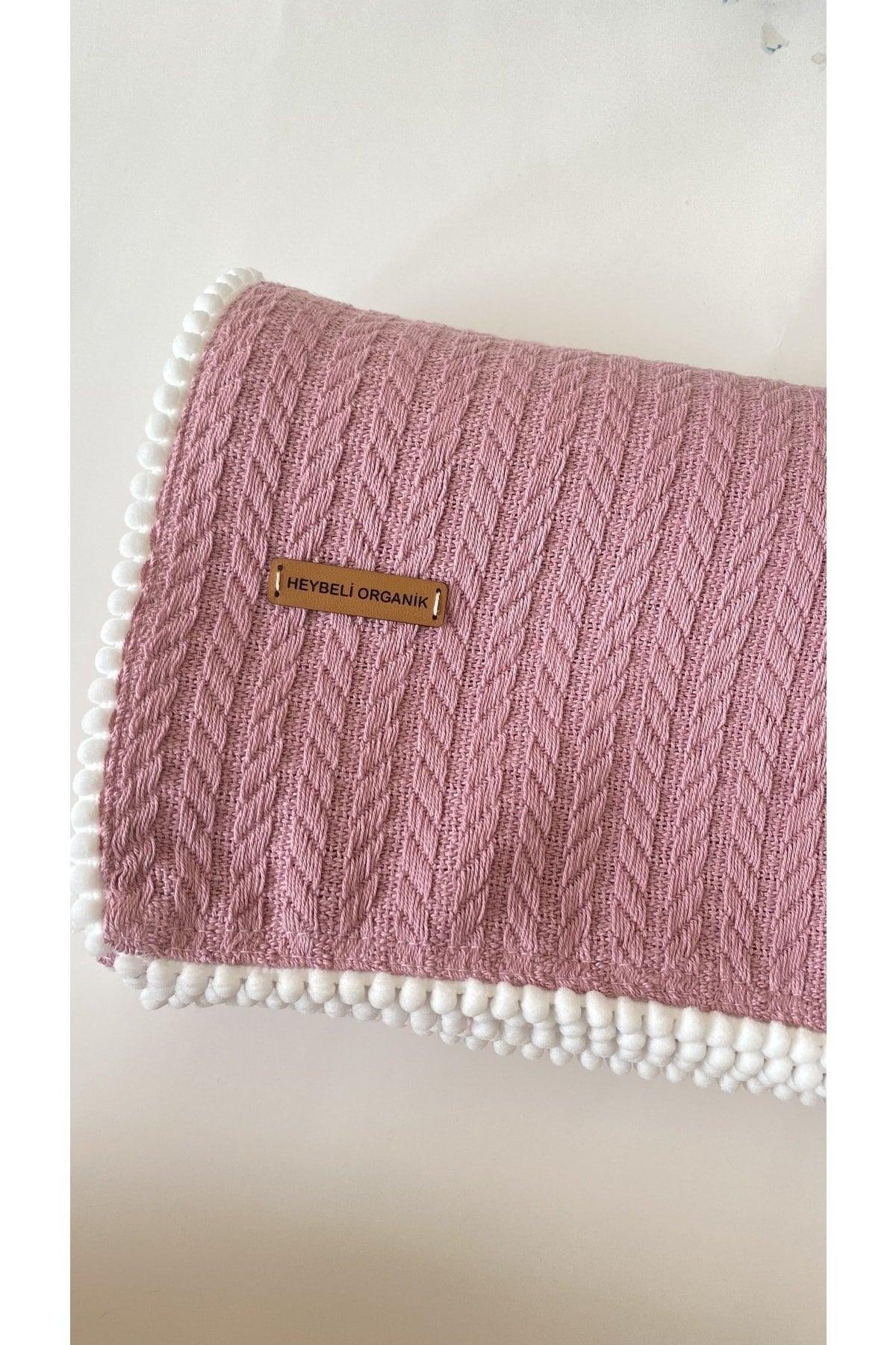 Cunda Series Knitted Pattern 100% Cotton Baby Pique Blanket Violet // 110X100 Cm