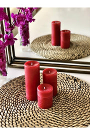 Cylinder Red Scented Long 3 Piece Sandalwood Scented Set Candle