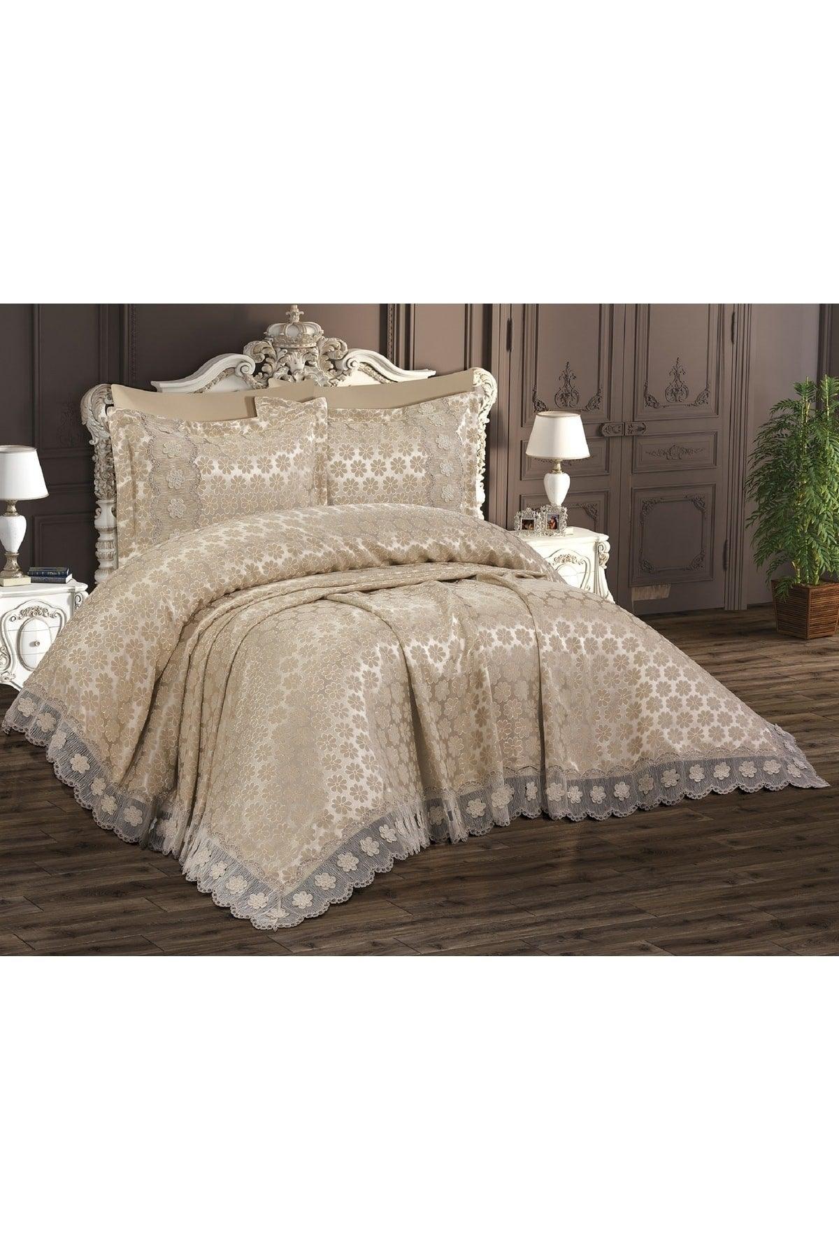 Daisy 6 Pieces Cappuccino Double Bed Cover ( Sheet + Bed Cover + Pillow )