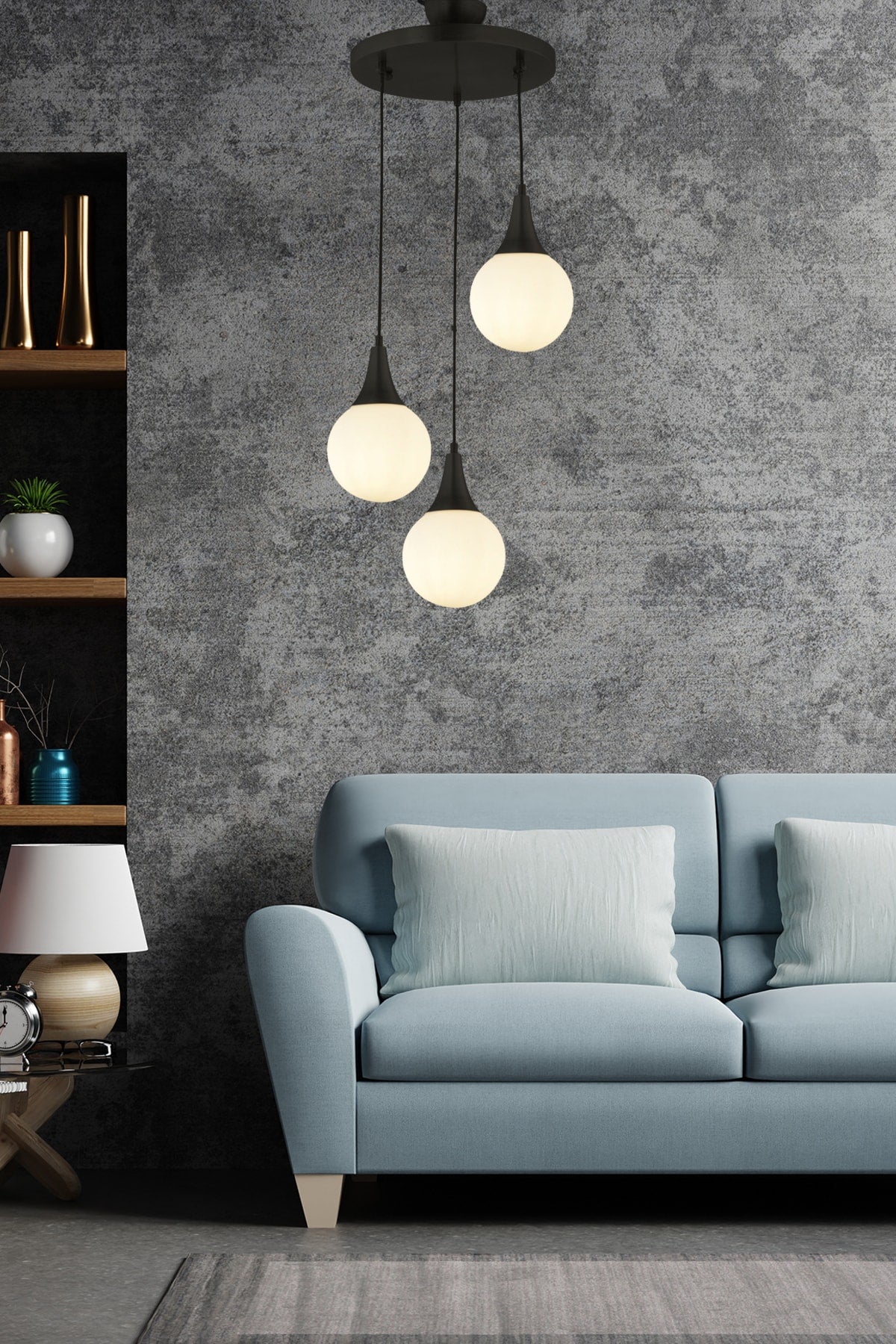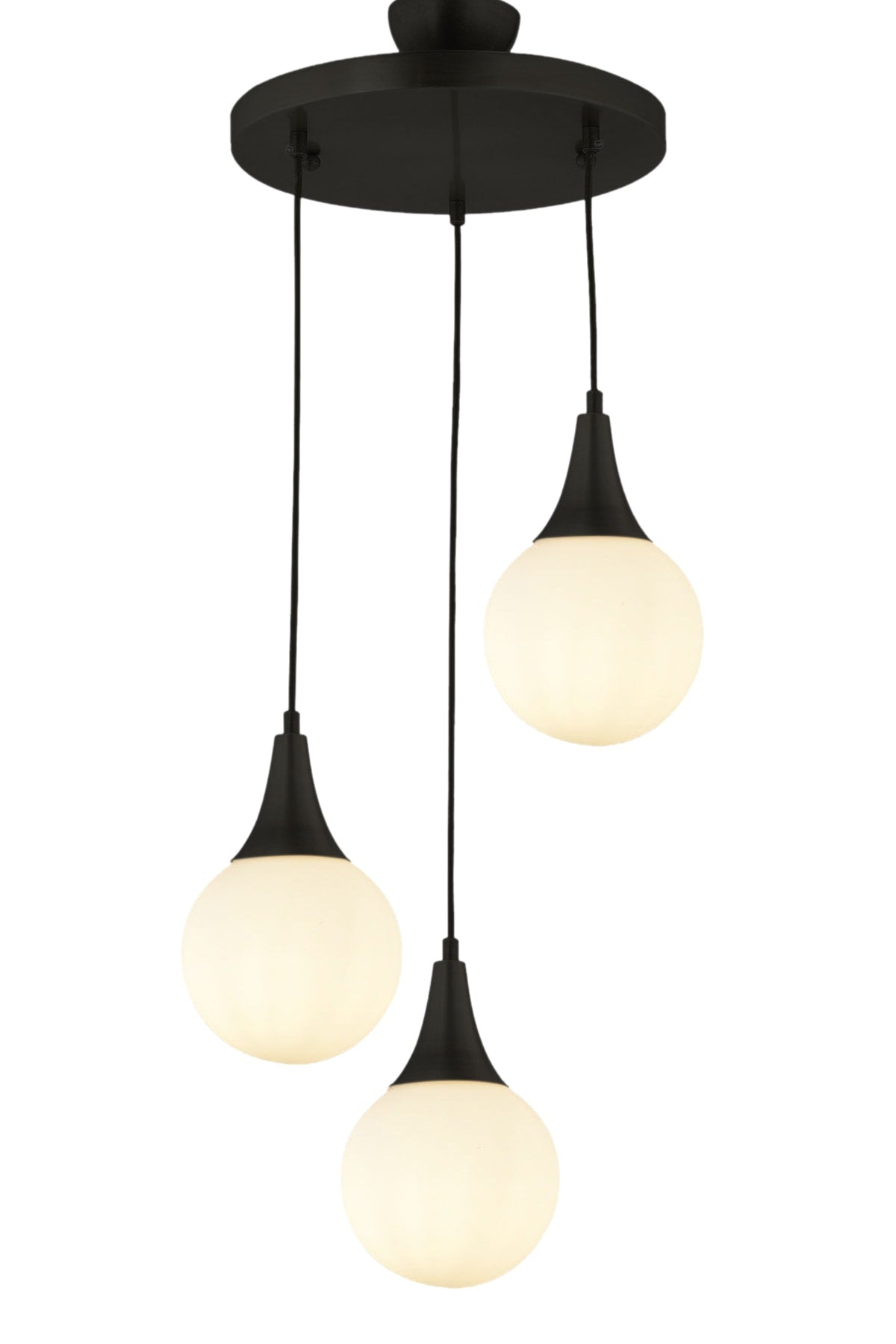 Damla 3-Piece Black Round White Glass Pendant Lamp Chandelier