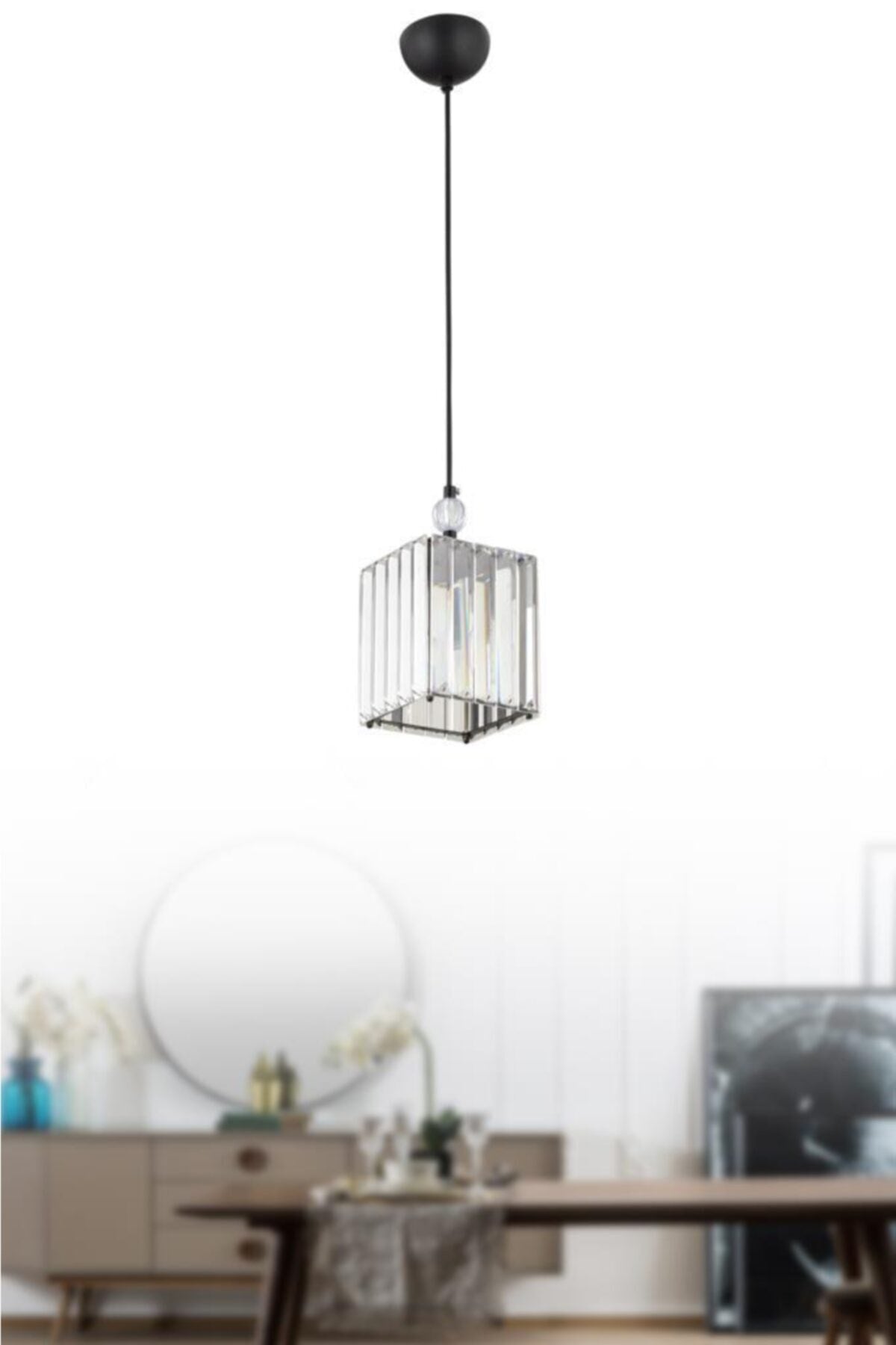 Dolunay Single Black K-15 Stone Chandelier With Crystal Stone Plumbing