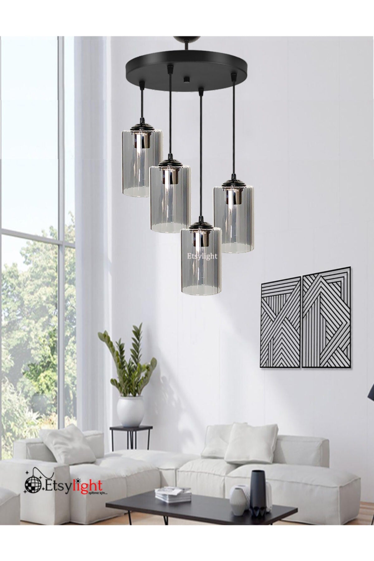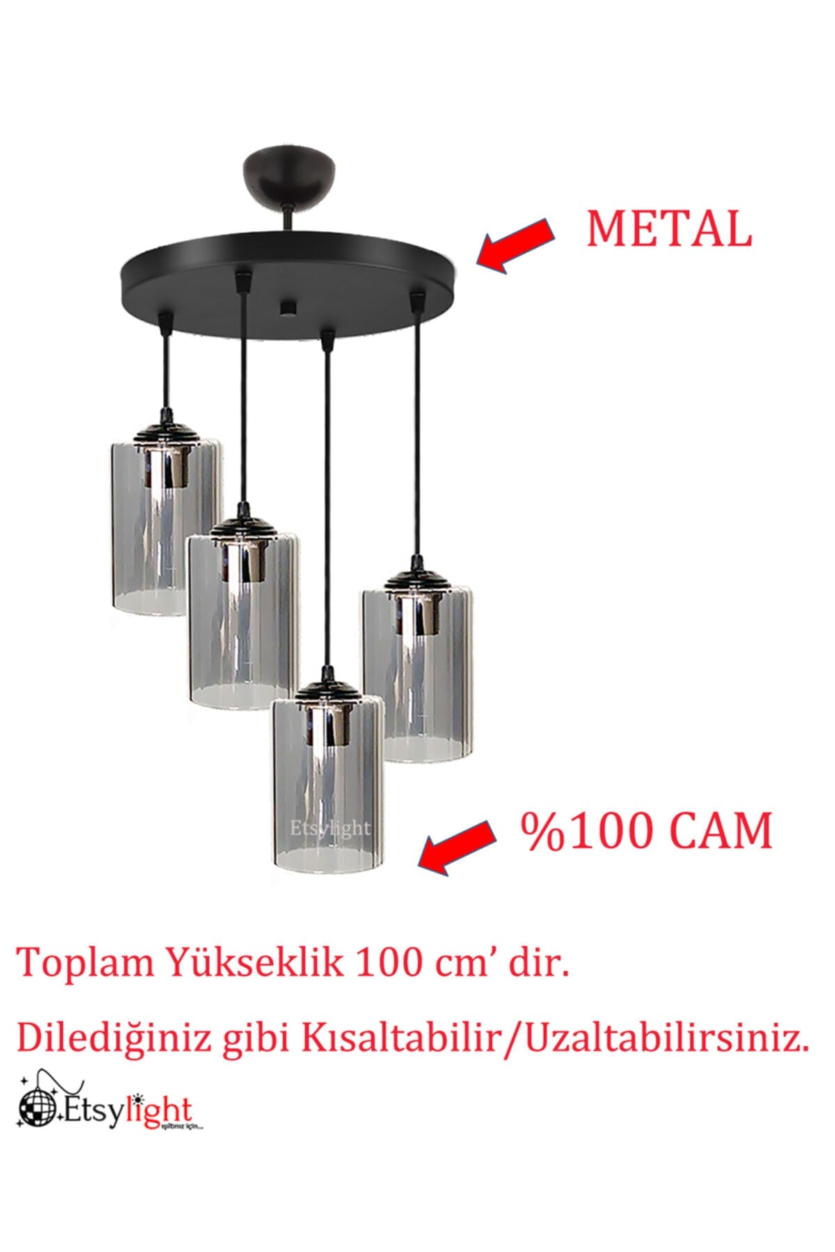 Etsylight home pendant chandelierblack chandelier with aesthetic features the product uses an e27 type socket and is suitable for use with led or energy-saving bulbs. you can use the chandelier with light sources of maximum 60 watts. thanks to its ideal design, it creates a bright environment with a single bulb. the metal used in the product is painted with static paint, which provides resistance to rust and scratches. thus, it maintains its first day appearance for many years and provides high lighting performance. offering a stylish stance with its glass reinforced against falls, the pendant lamp is adjustable in length and is compatible with different ceiling heights. you can use a damp cloth or non-abrasive chemicals to clean the chandelier. after turning off the electricity, you can clean the glass and metal parts that you can remove with a soft sponge and put them back after drying them completely. you can change the atmosphere of your home and workplace. e27 lampholder, adjustable installation.product featurestotal height: 85 cm / adjustable / shortenableround table diameter: 40 cmcylinder height: 18 cmhead material: glass. it is not plastic or mica. Create a party-ready atmosphere with this colorful LED lighting. Easy to install and perfect for events or home decoration.