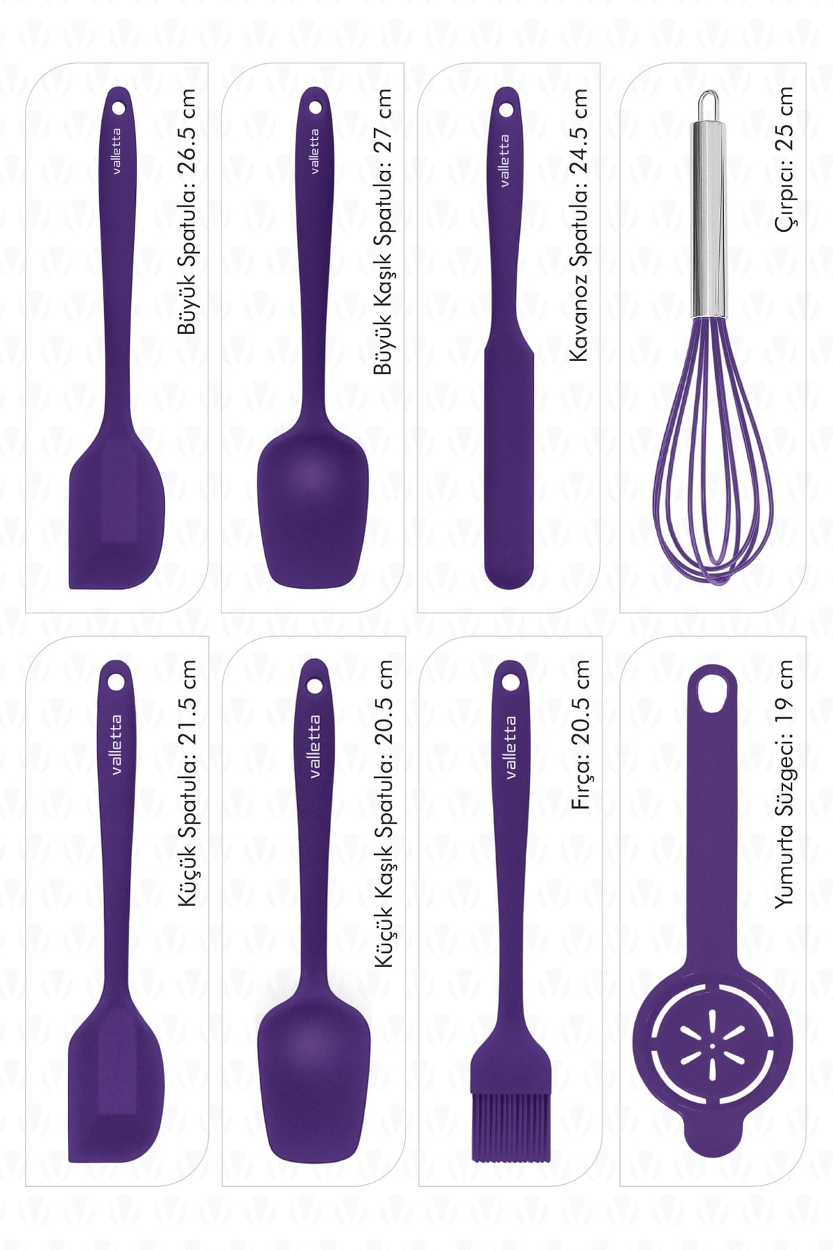 Drongo Heat Resistant Fireproof Nonstick Silicone Spatula Set 8 Pieces Purple