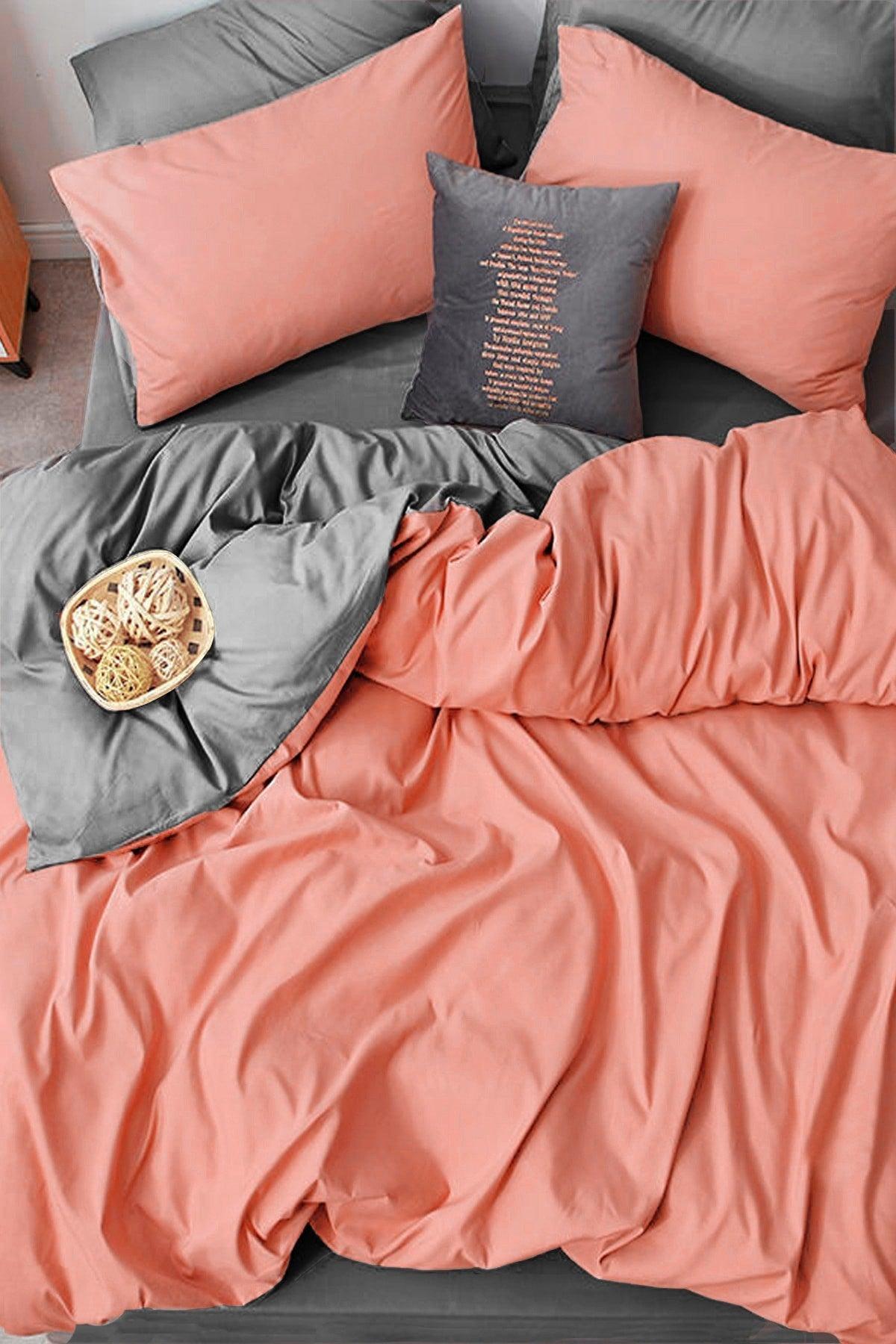 Elastic Bed Linen Duvet Cover Set Single Salmon-Gray