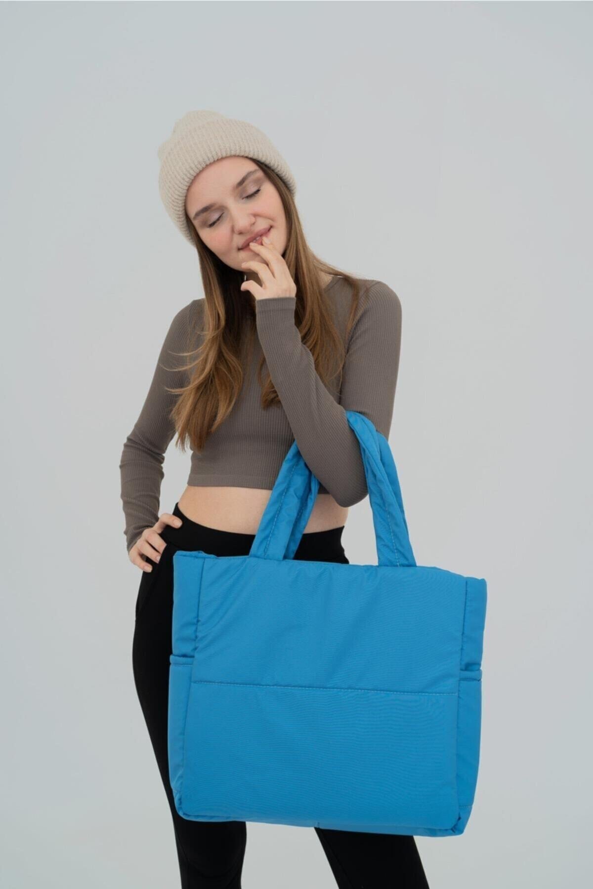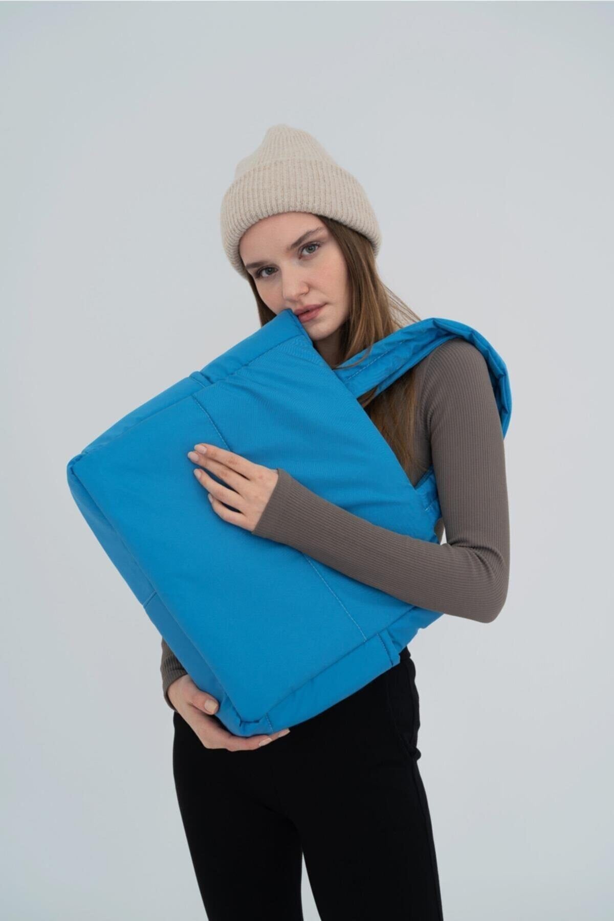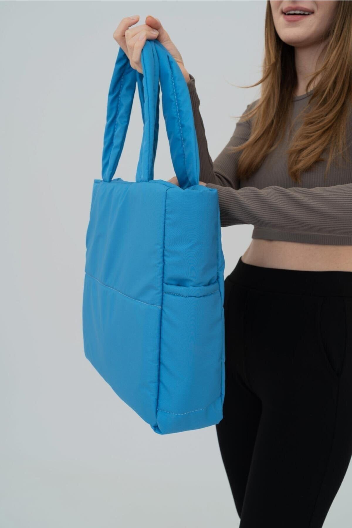 Embossed Puff Fabric Shopper Bag Naples Blue