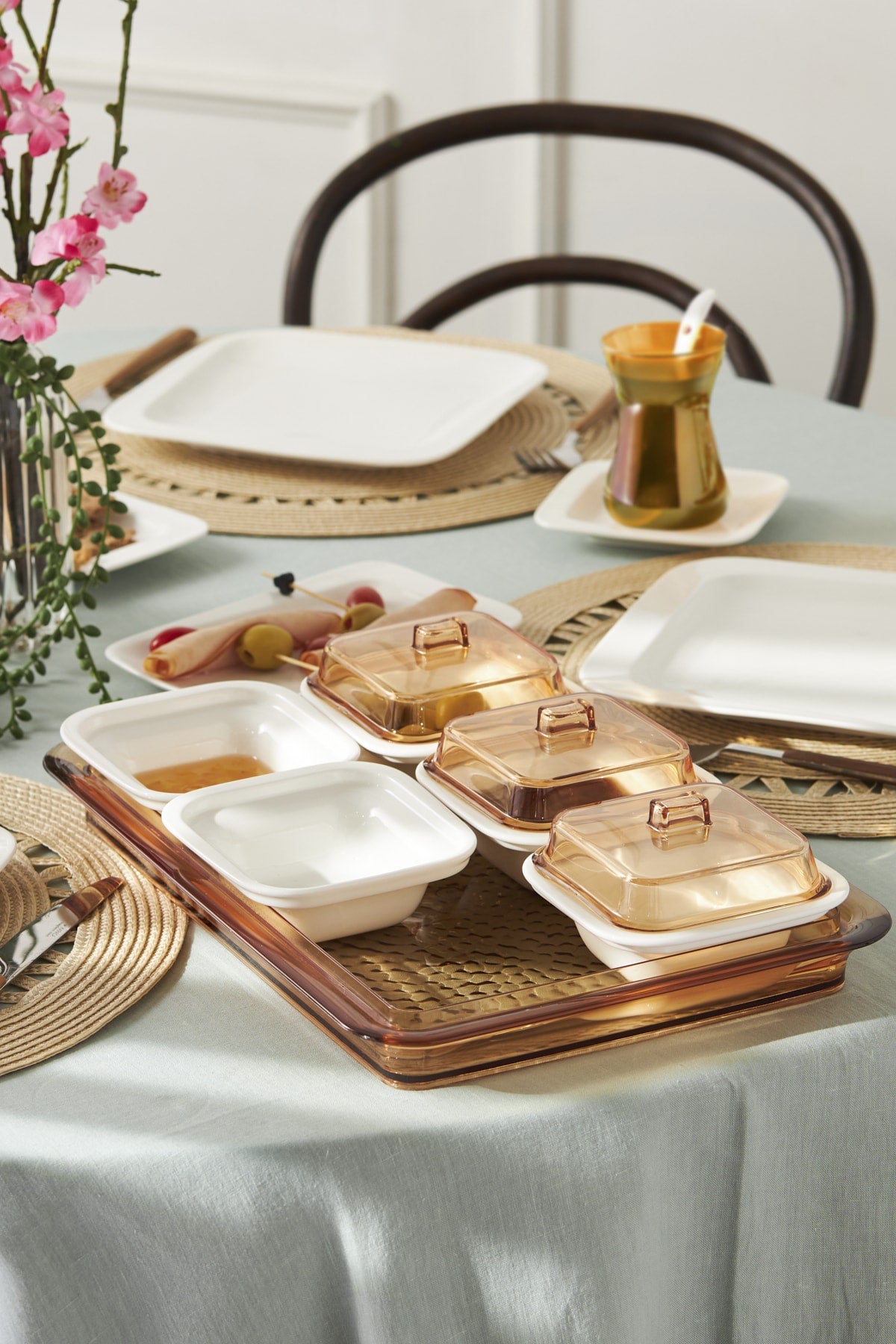 Fabio Amber Porcelain 41 Piece Breakfast/Serving Set For 6 Persons Square