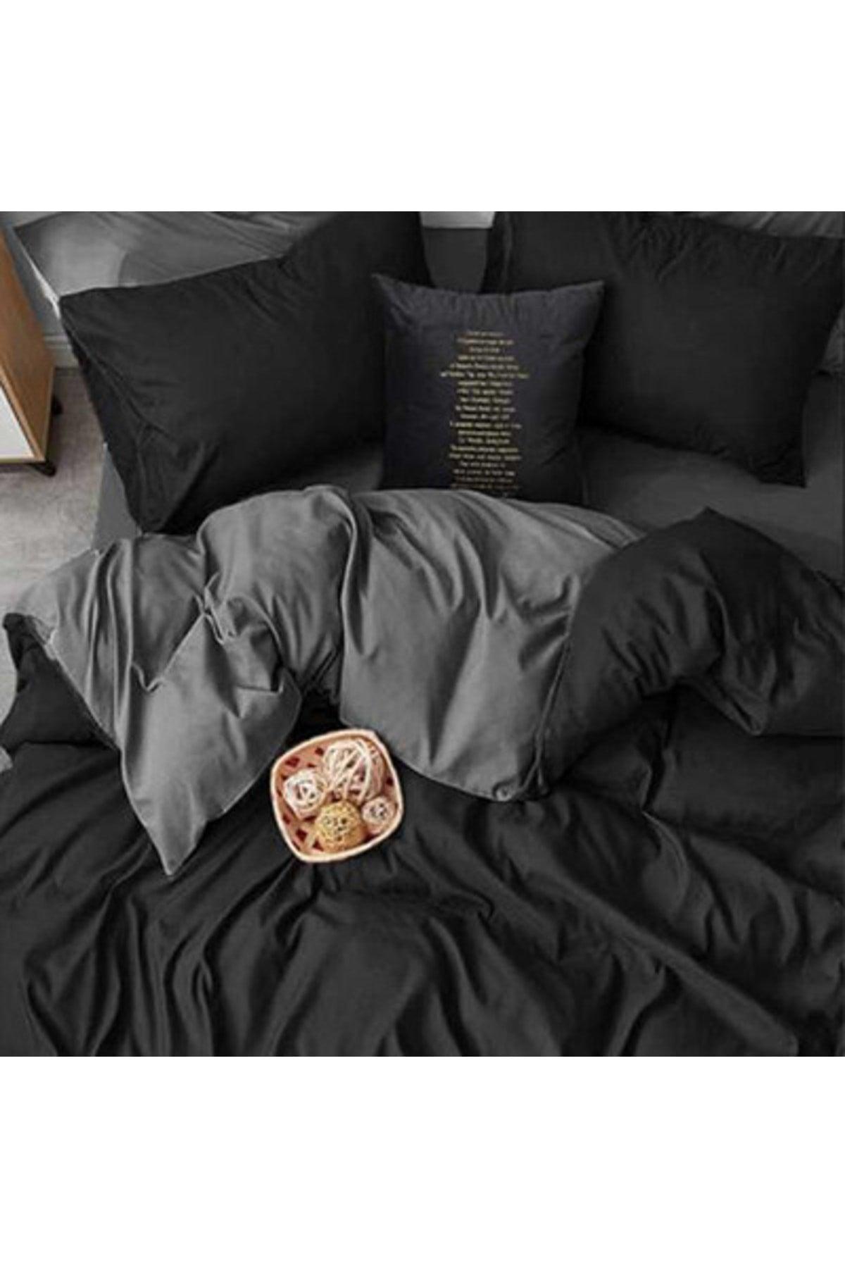 Grey-Black Ranforce Cotton Double Duvet Cover Set Blackgrey 035354