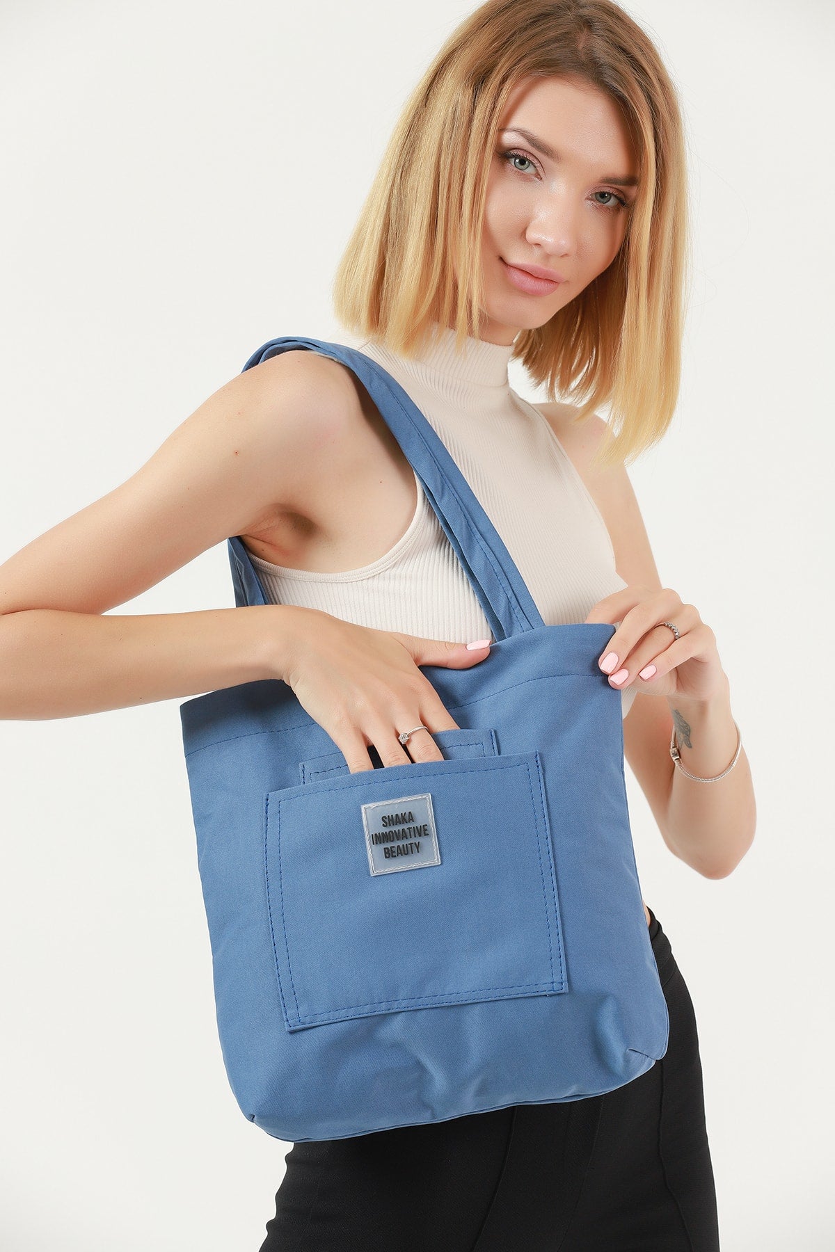 Indigo U22 3-Compartment Front 2 Pocket Detailed Canvas Fabric Daily Women'S Arm And Shoulder Bag B:35 E:35