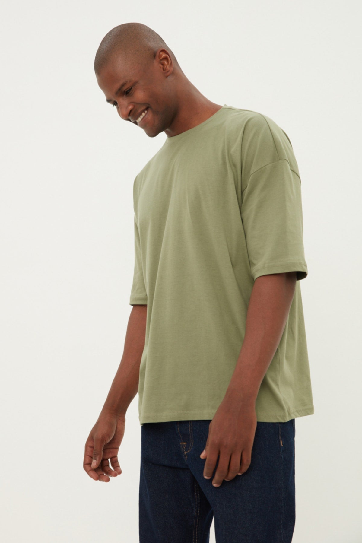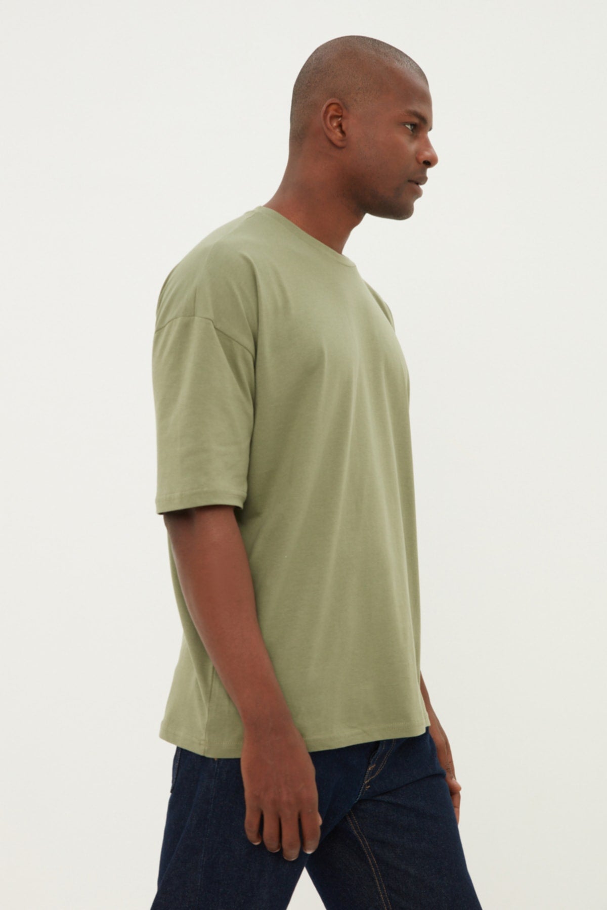 Khaki Men'S Basic 100% Cotton Crew Neck Oversized Short Sleeved T-Shirt Tmnss22Ts0318