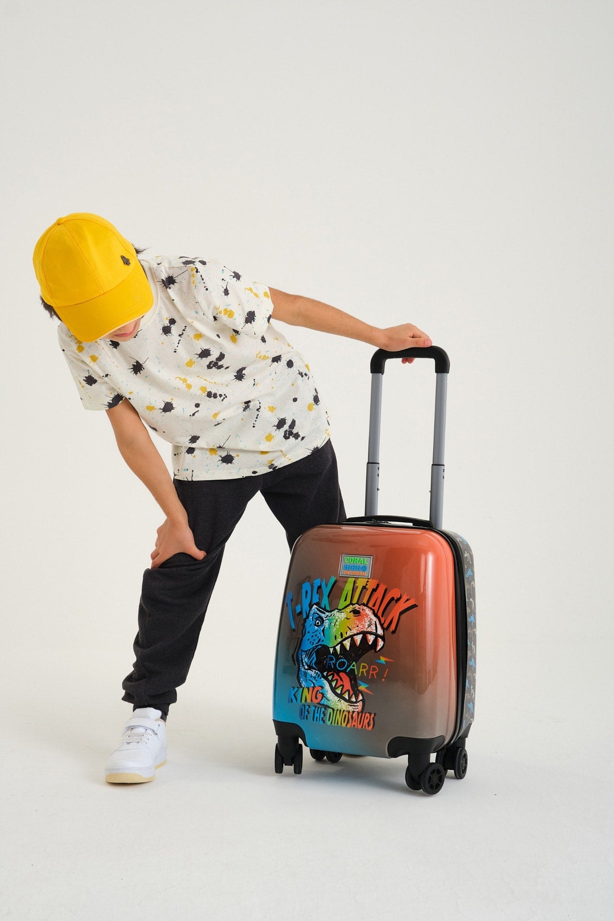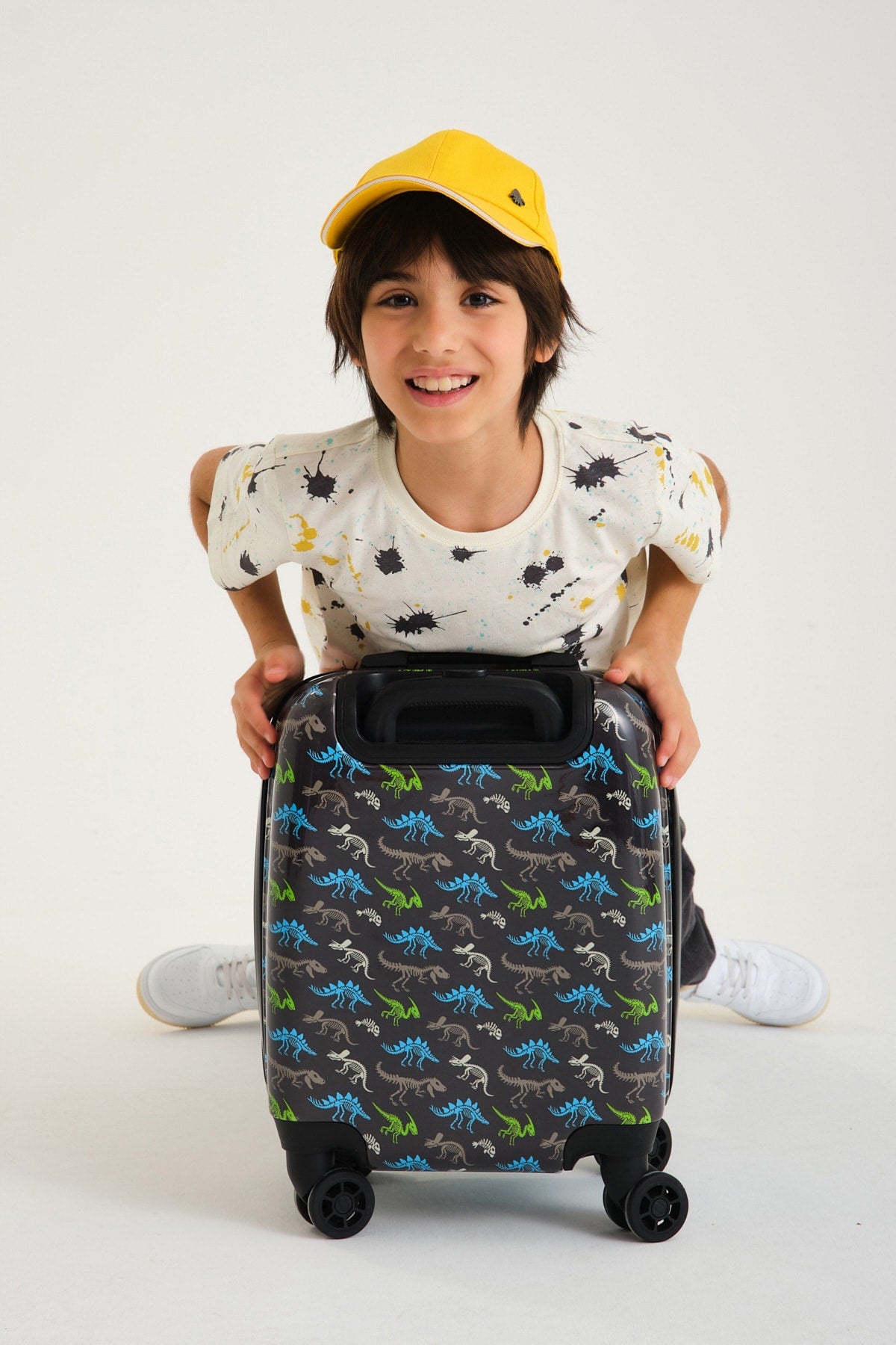 Kids Dark Gray Dinosaur Patterned Child Suitcase 16750