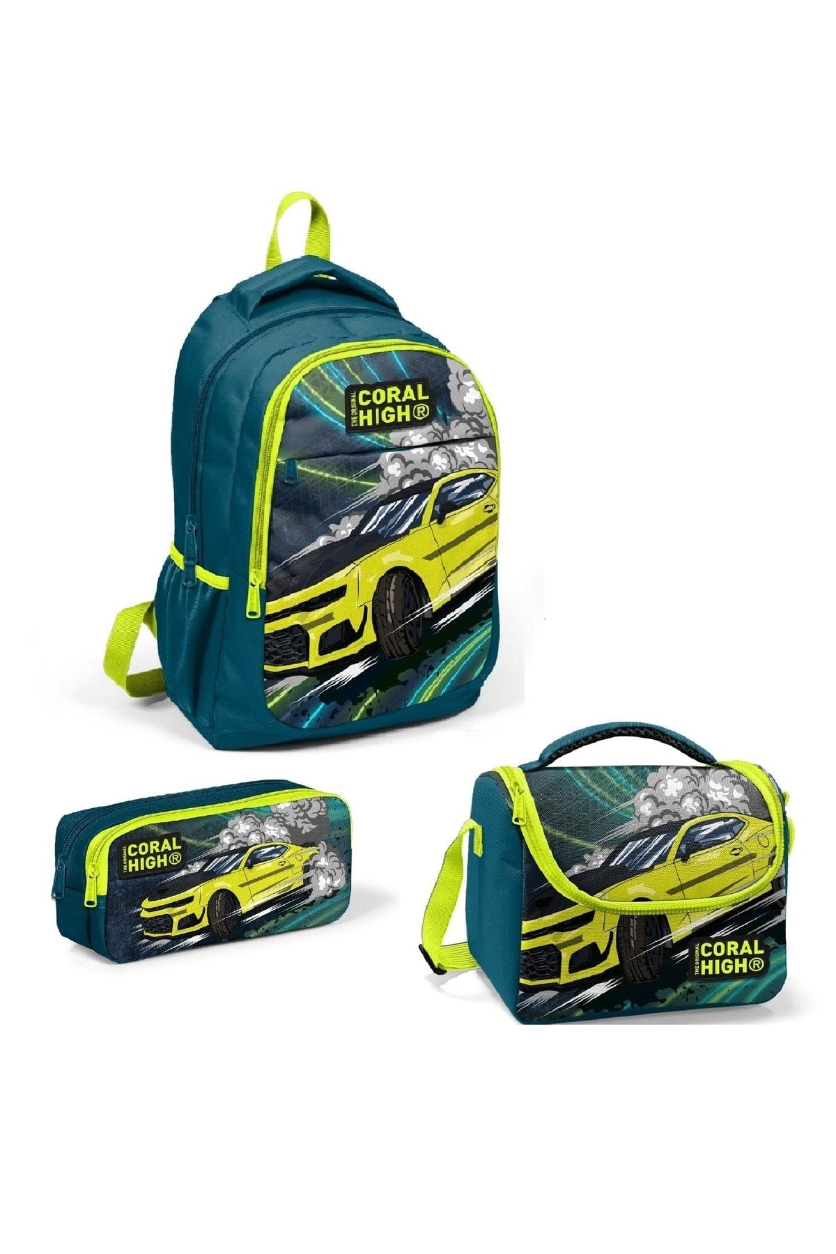 Kids Nefti Phosphor Yellow Car Patterned Three-Pack Bag Set