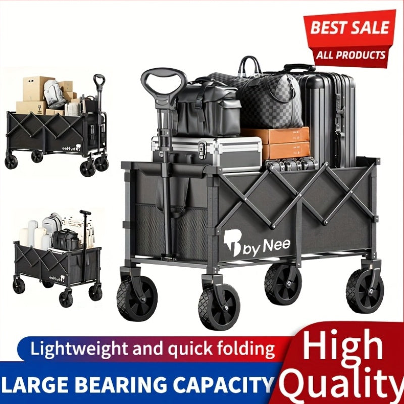 330-650LBS Large Capacity Camping Cart, All-Terrain Folding Handcart, Multi-Functional Camping, Gardening, Beach Shopping Portable Vehicle, Black Garden Tool Storage Rack, Sturdy Design, Durable Ti...