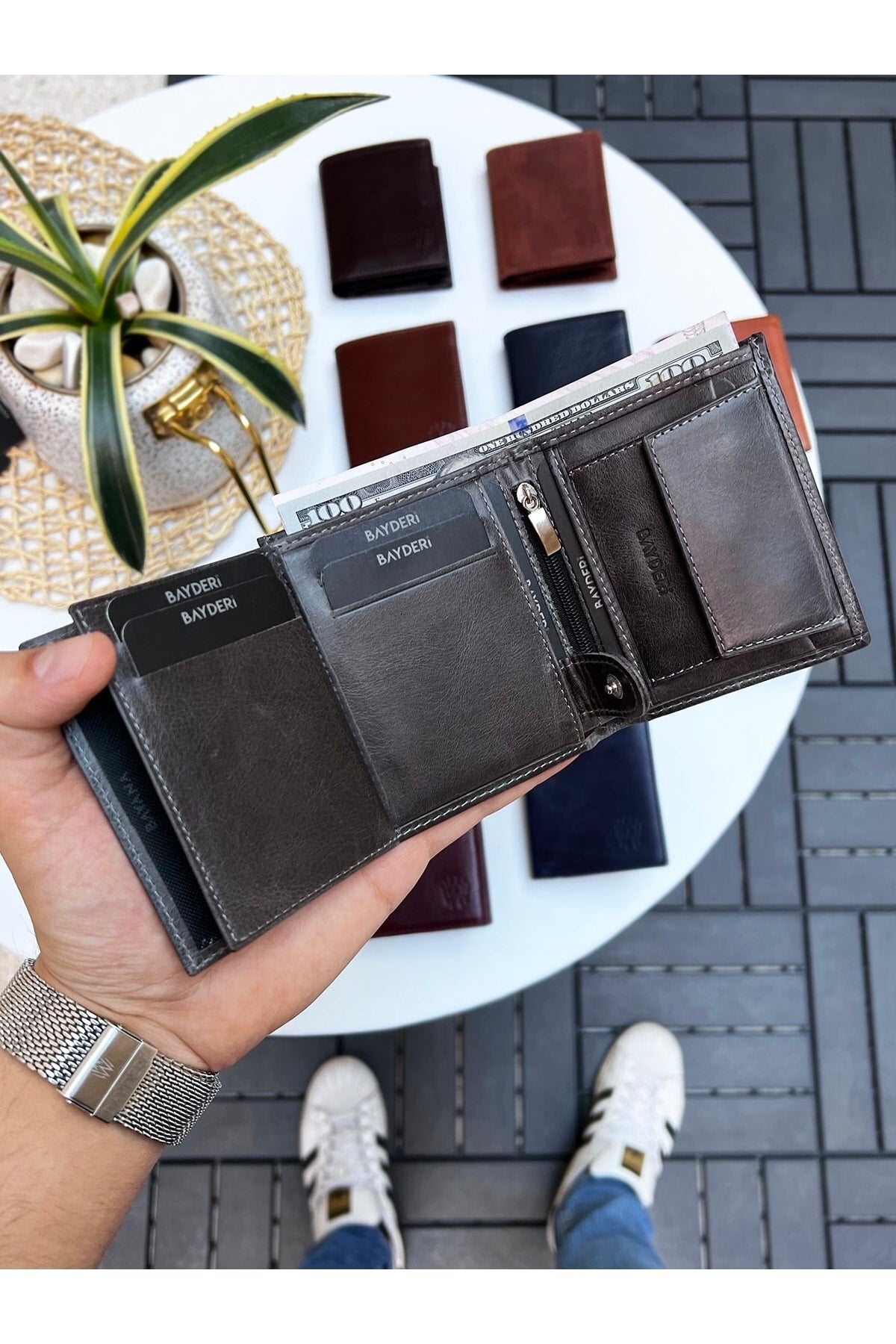 Luna Genuine Leather Handy Coin Holder Kibar Men'S Wallet Crazy Gray