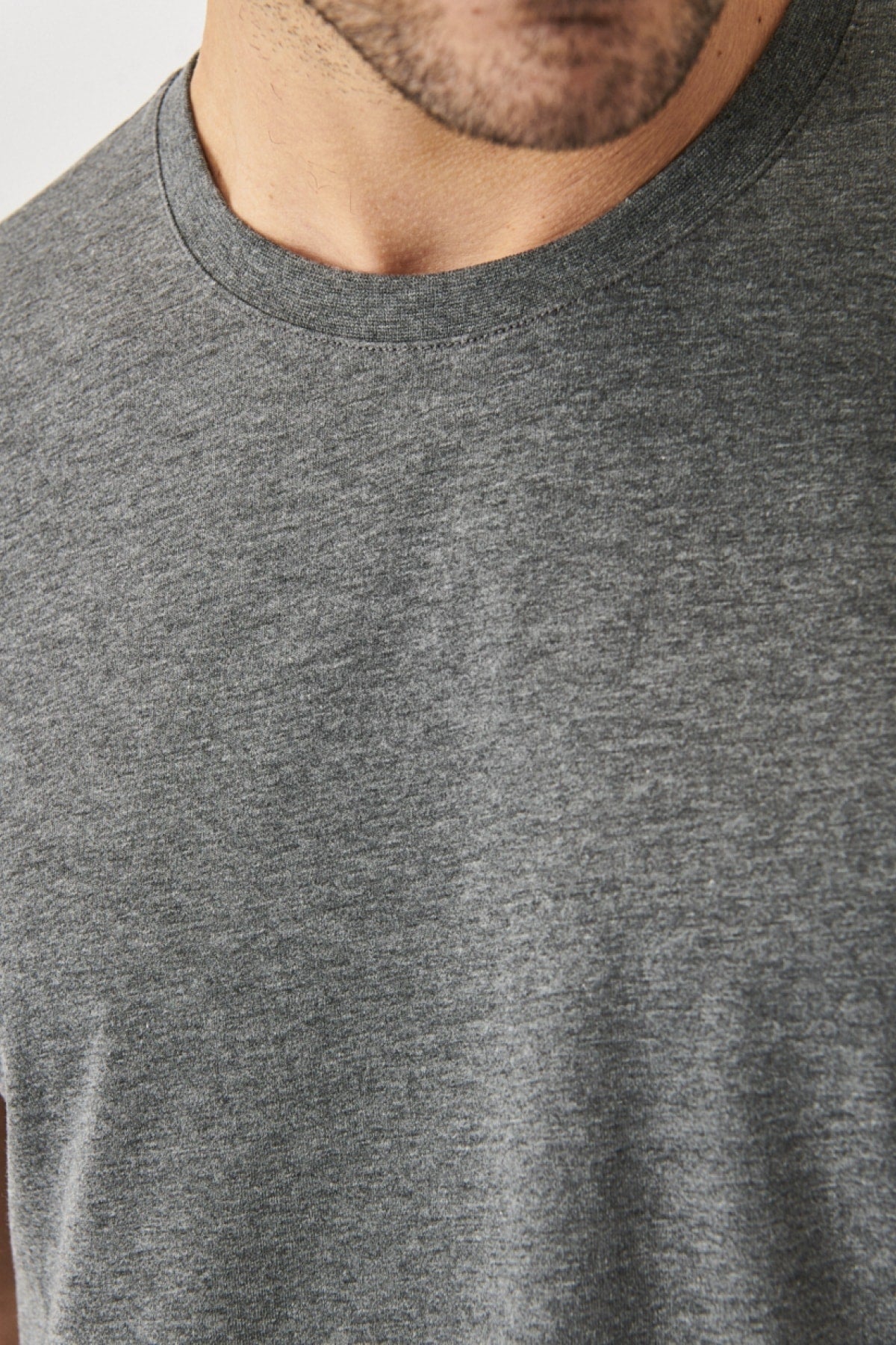 Men'S Anthracite Cotton Slim Fit Slim Fit Crew Neck Short Sleeved T-Shirt