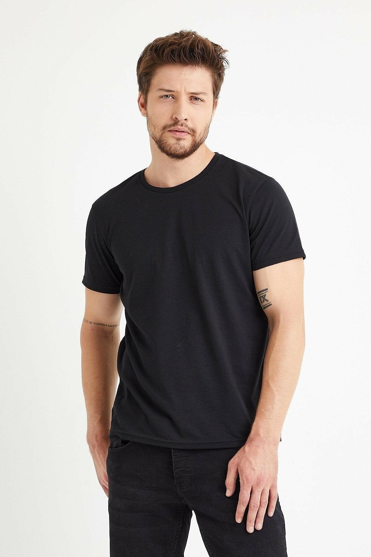 Men'S Black Crew Neck Short Sleeve Cotton T-Shirt