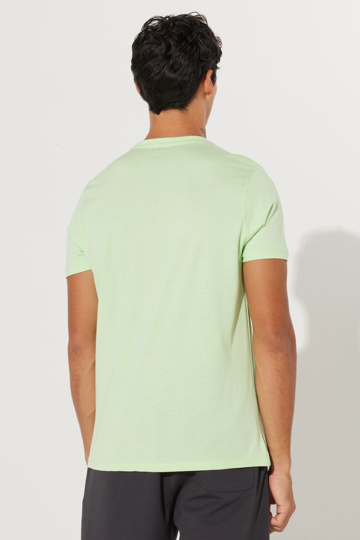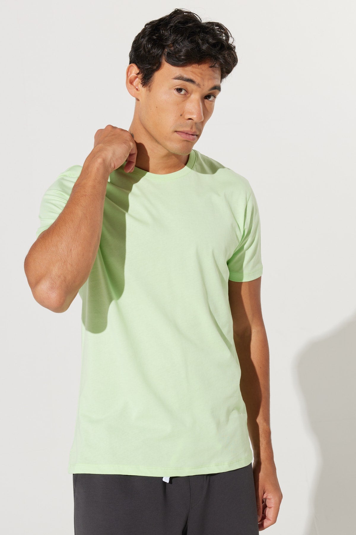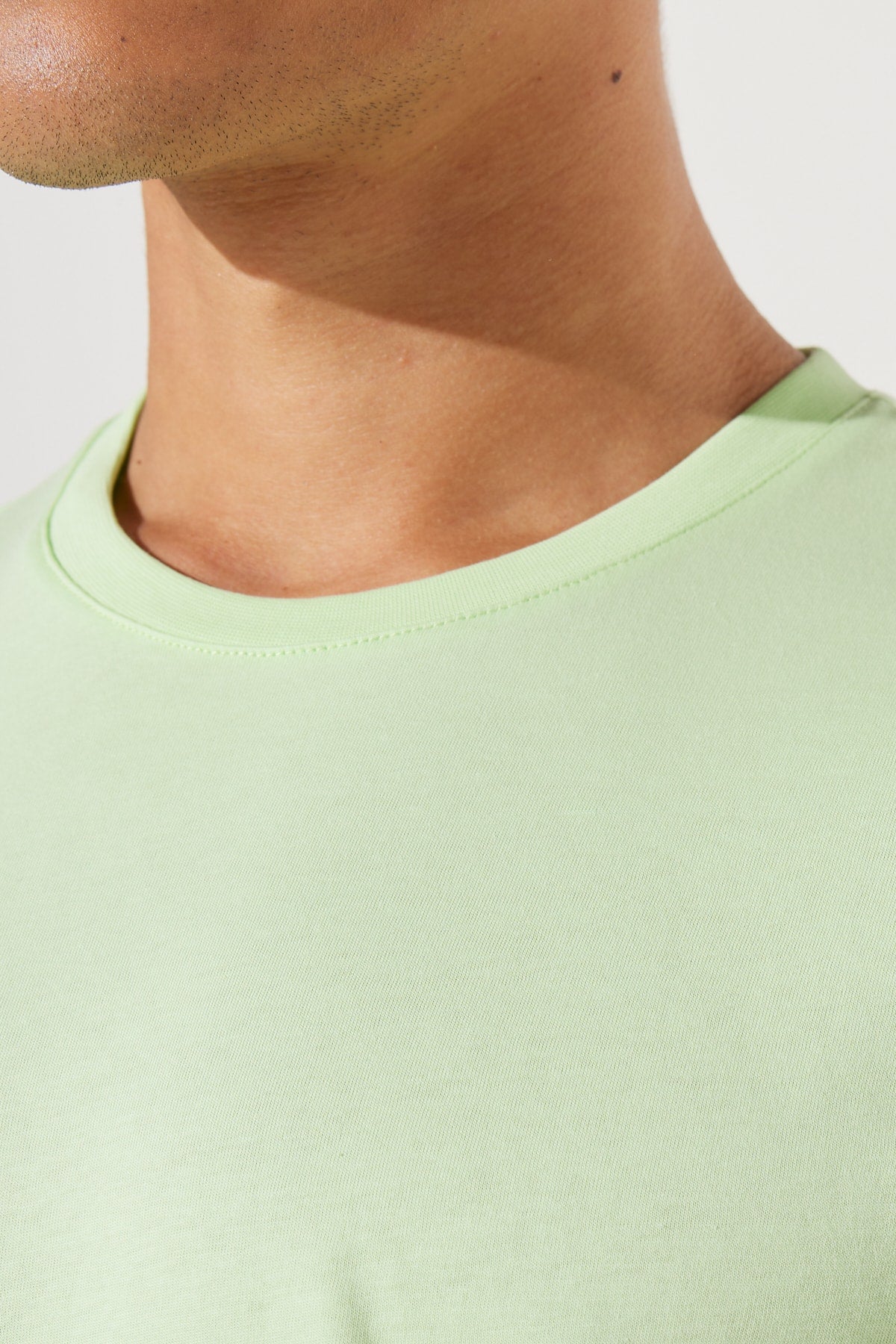 Men'S Light Green Slim Fit Slim Fit 100% Cotton Crew Neck Short Sleeved T-Shirt