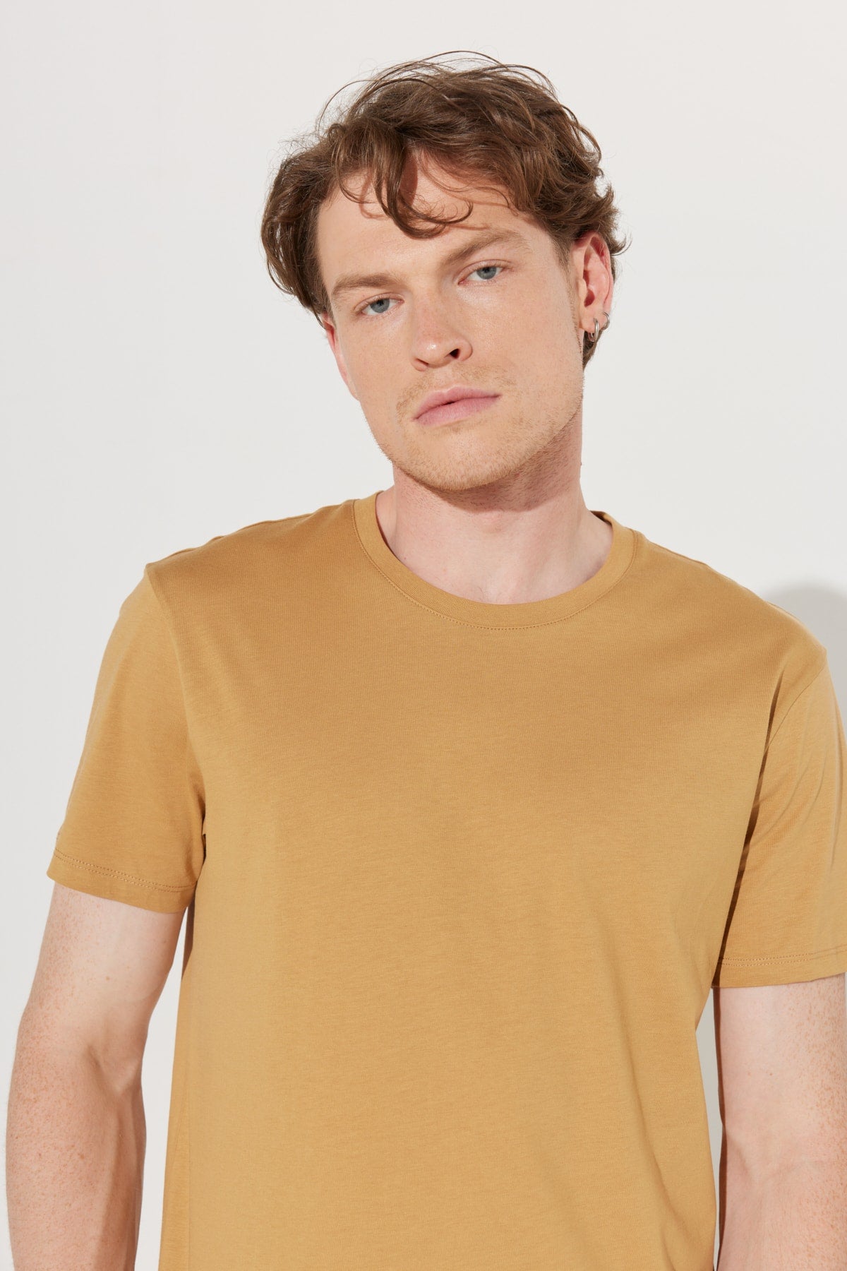 Men'S Mustard Slim Fit Slim Fit 100% Cotton Crew Neck Short Sleeved T-Shirt