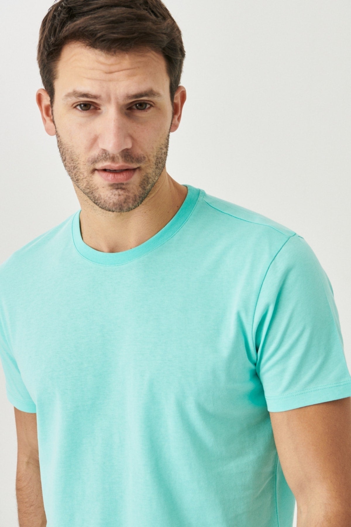 Men'S Turquoise 100% Cotton Slim Fit Slim Fit Crew Neck Short Sleeved T-Shirt