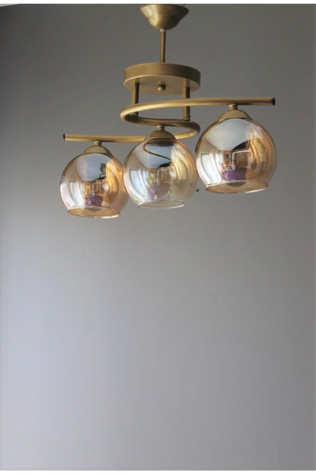 Modern Living Room Kitchen Decorative Antique Honey Glass Fuji 3-Piece Chandelier