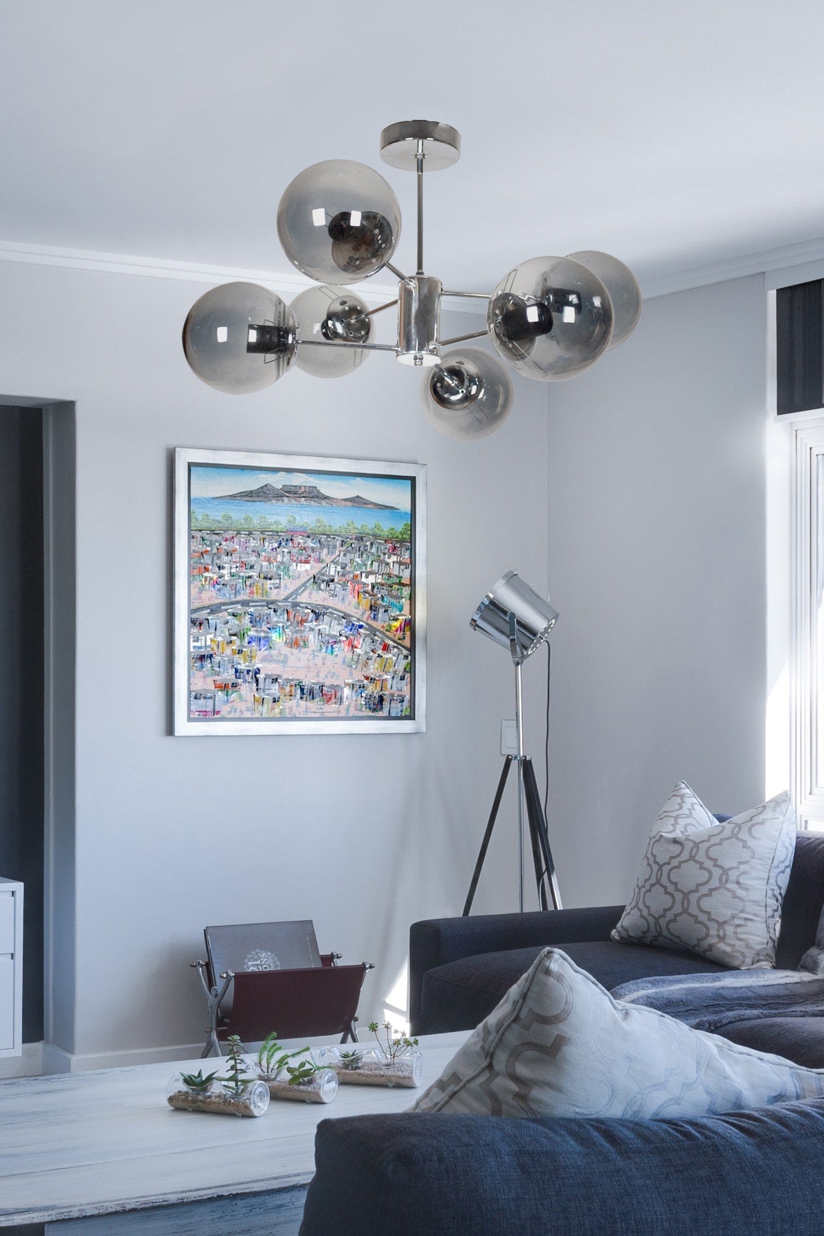 Oscar Modern Luxury Design Chrome Color Case Smoked Glass Living Room - Kitchen - Bedroom 6-Piece Chandelier