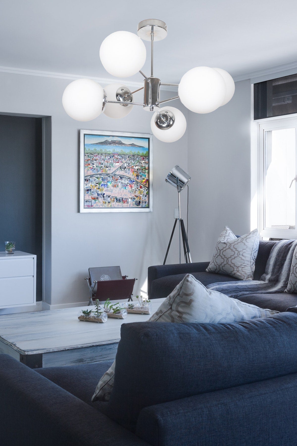 Oscar Modern Luxury Design Chrome Color Case White Glass Living Room - Kitchen - Bedroom 6-Piece Chandelier