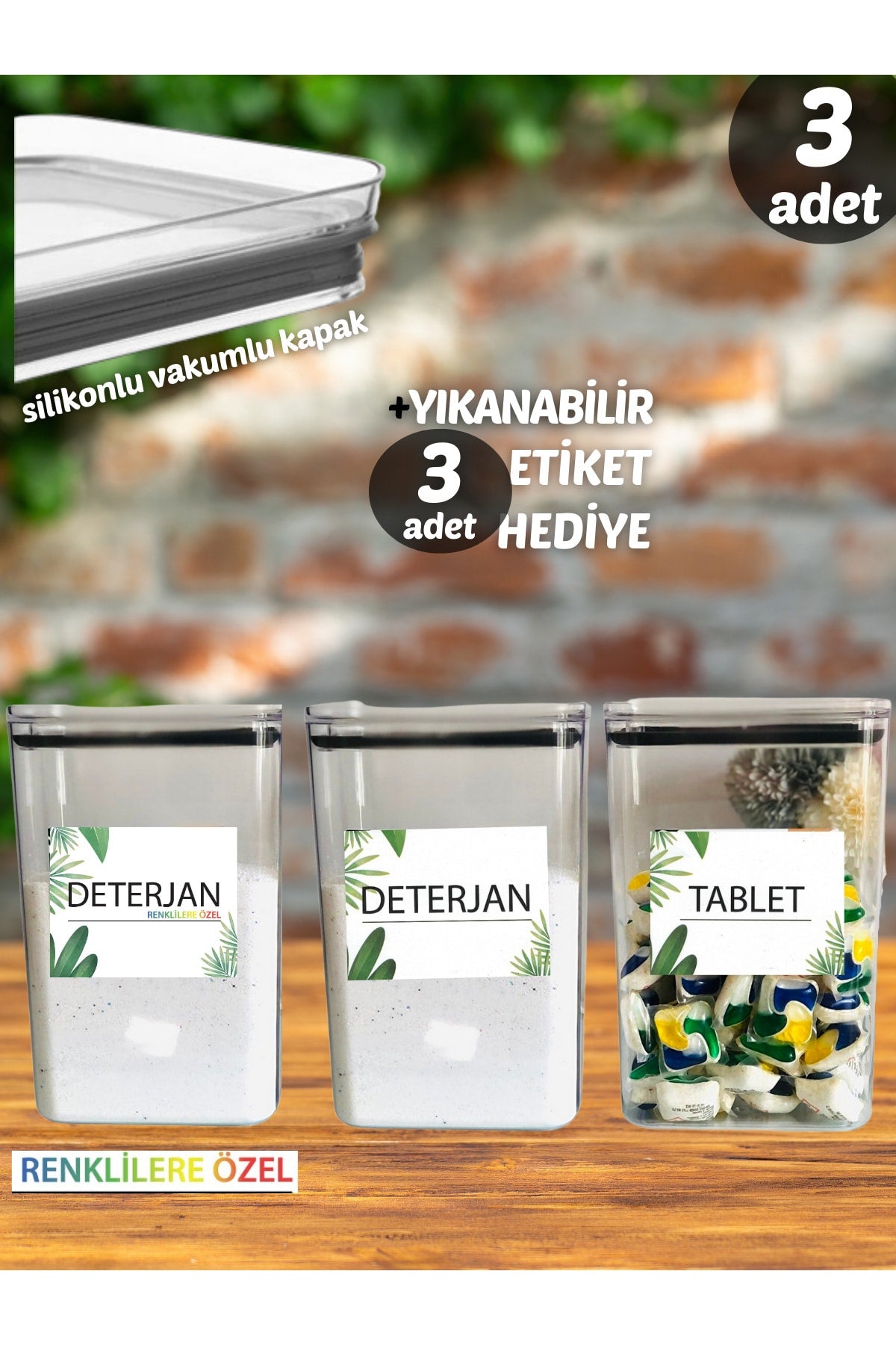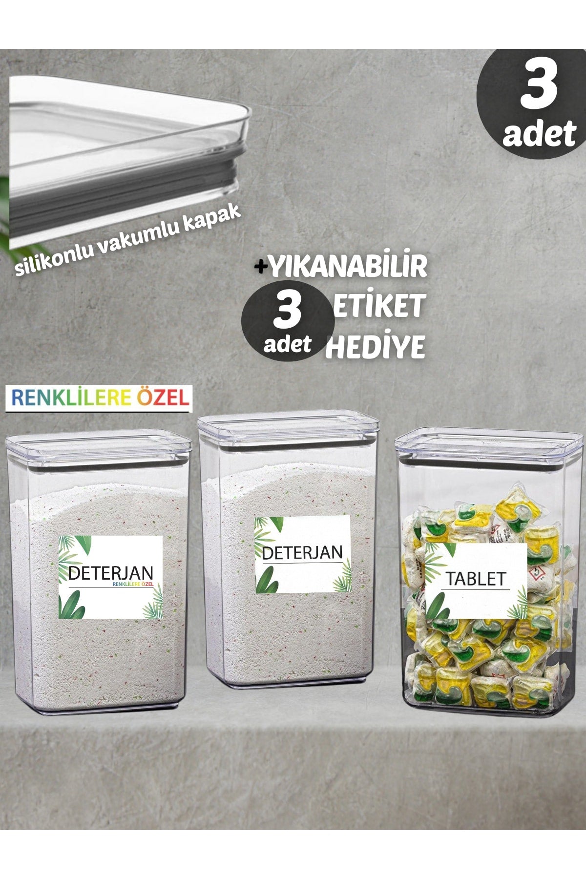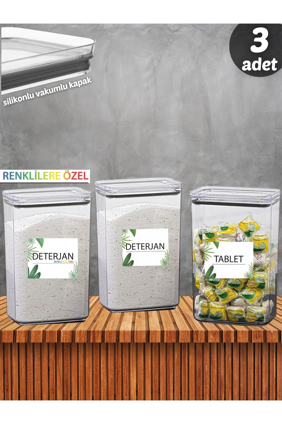 Pcs Detergent Container , Tablet Container Decorative Rectangle 2.9 Lt Vacuum Lid Set Of 3 Storage Box