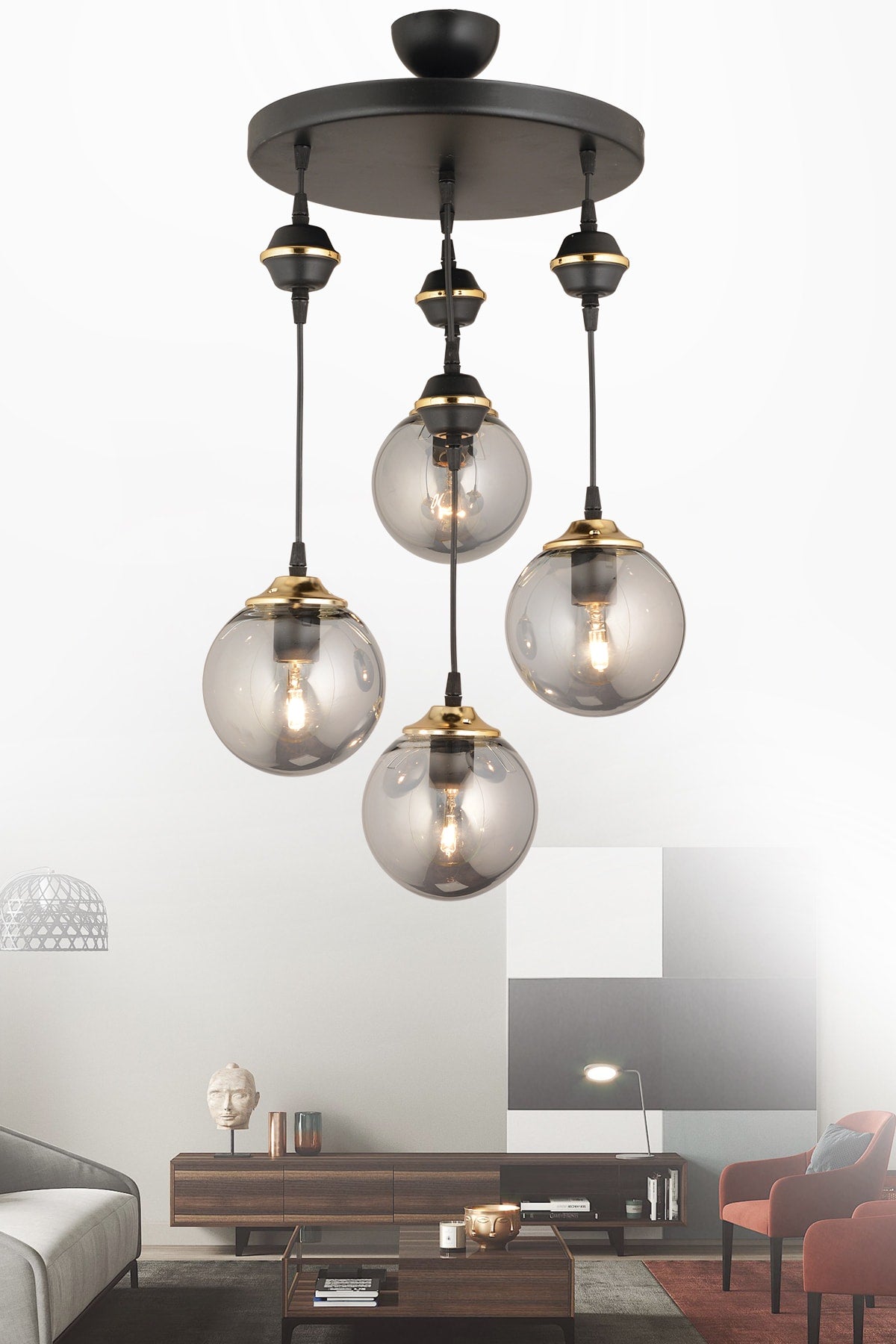 Pendant Lamp Tray Black 4-Piece Smoked Glop Top Glass Downward Facing Luxury Chandelier