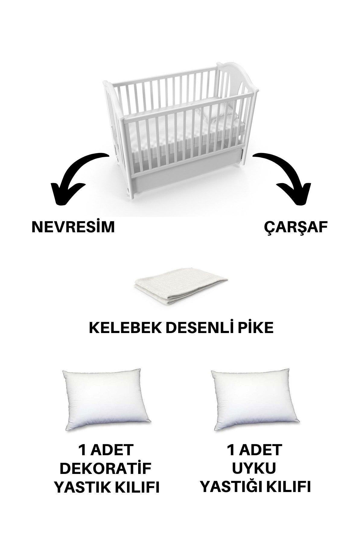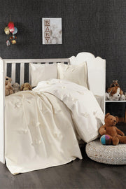 Product content: 100x150 cm duvet cover (1 piece) 100x150 cm bed sheet (1 piece) 45x45 cm decorative pillowcase (1 piece) 35x45 cm sleeping pillow cover (1 piece)120x150 cm cotton pique bedspread (1 piece) product features: our products % it is produced from 100 high quality cotton yarns. it is suitable for use in 4 seasons. it provides a comfortable sleep by balancing the heat thanks to its breathable cotton structure. all the parts included in the baby set are made of 100% cotton fabric for the health of your baby. the butterfly patterns in our set are an elegant three-dimensional visual. thanks to the use of high quality yarn, it is long-lasting and durable. Improved version for clearer understanding and better search visibility. Suitable for users seeking detailed and reliable product information.