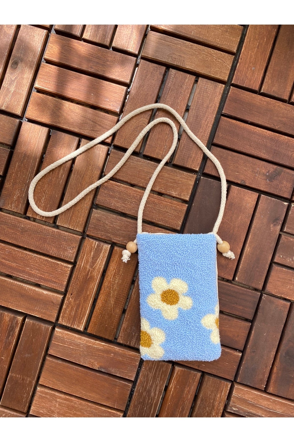 Punch Embroidery Phone Bag - Daisy Patterned Blue