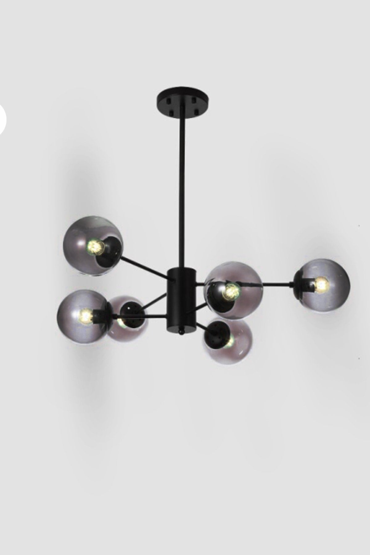 Rita Modern Black Case Smoked Closed Imported Glass Six-Piece Chandelier
