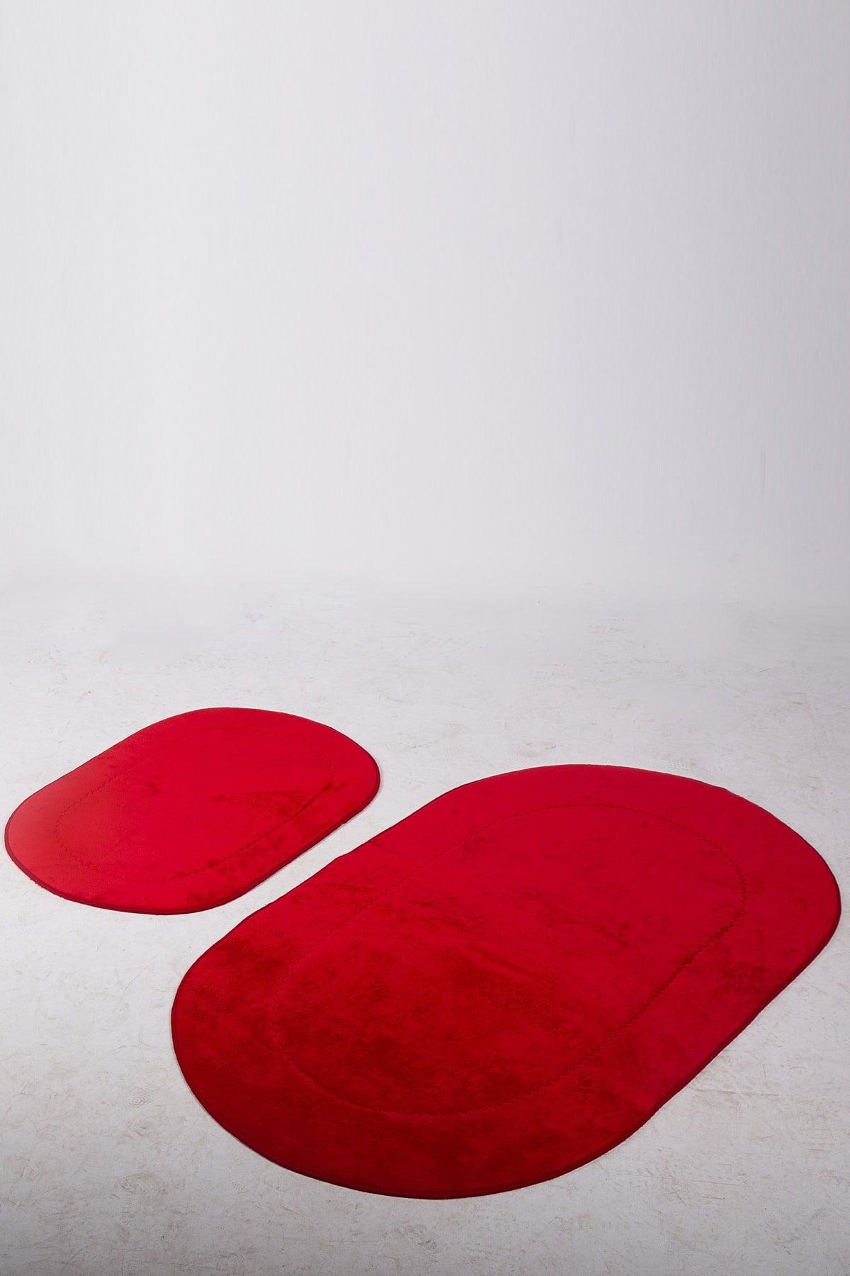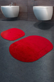 Rixos Red 2 Pcs Bathroom Carpet Mat Set Non-Slip Toilet Seat Set