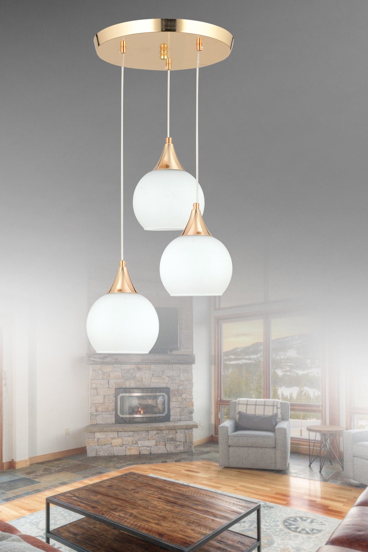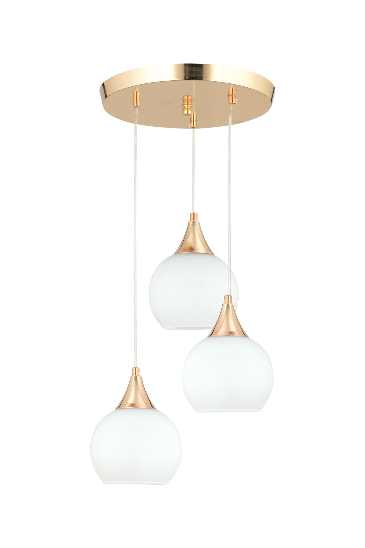 Sante 3-Piece Gold White Glass Modern Pendant Lamp Chandelier Living Room Kitchen Room Hallway Chandelier