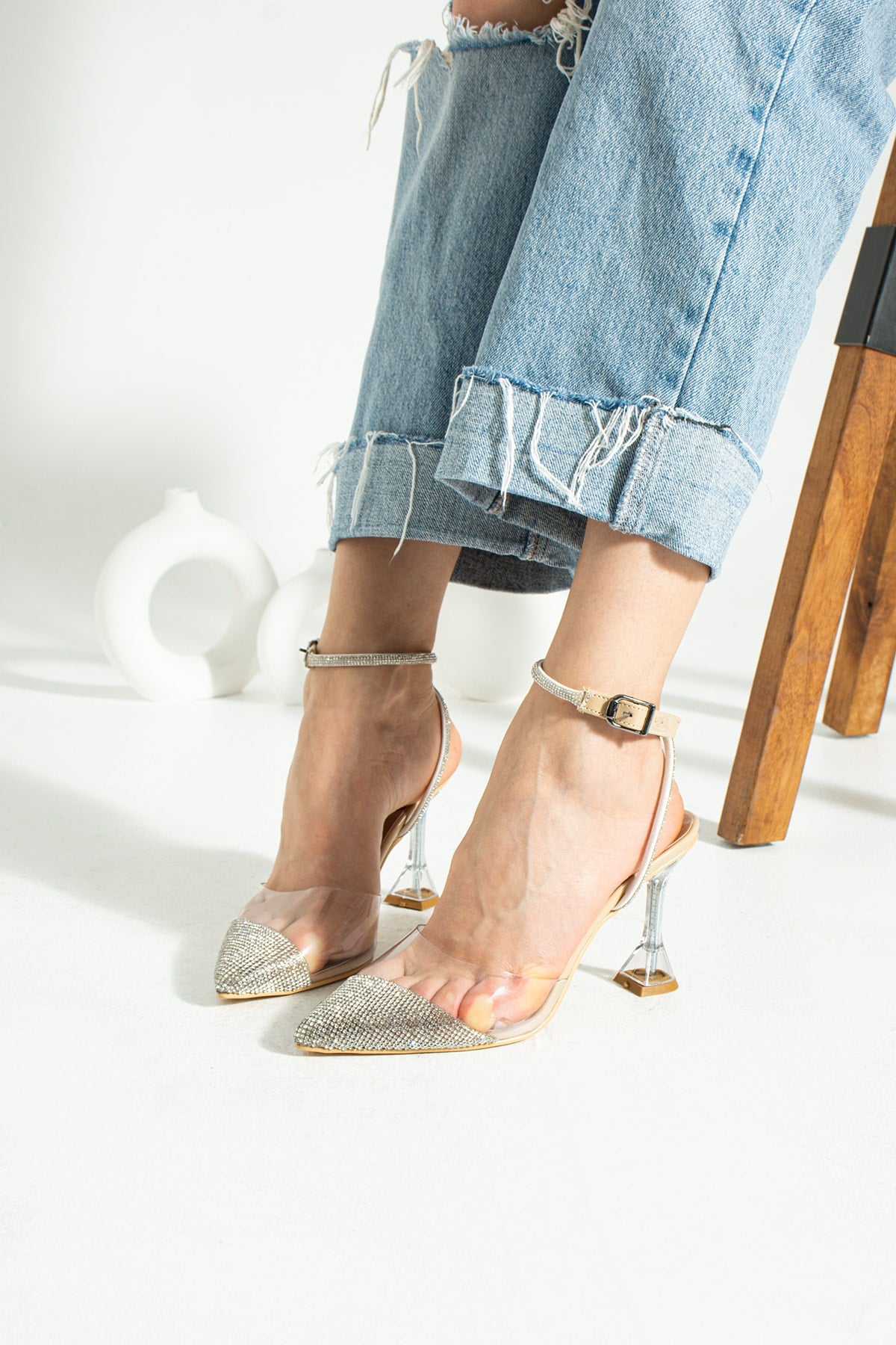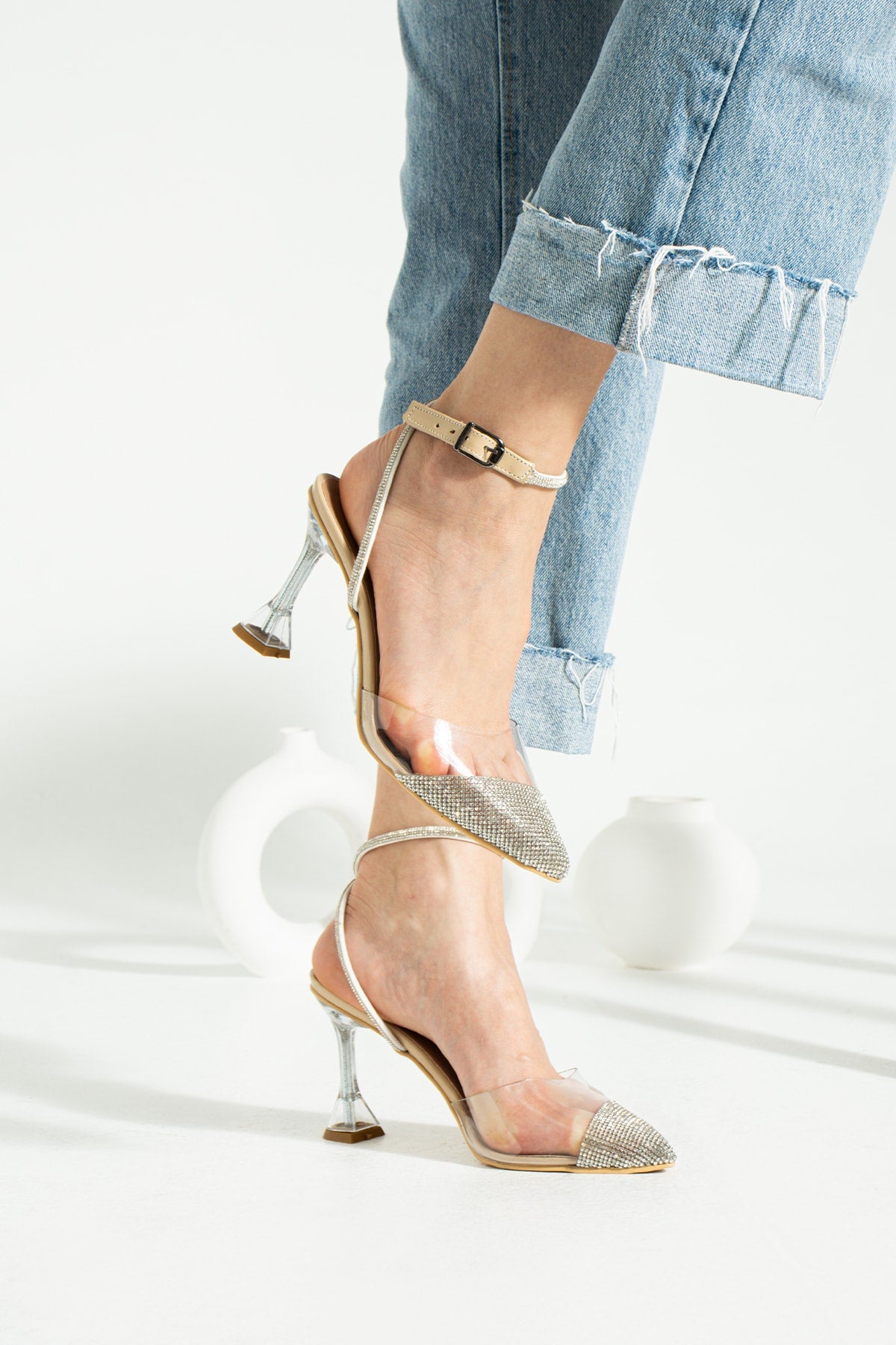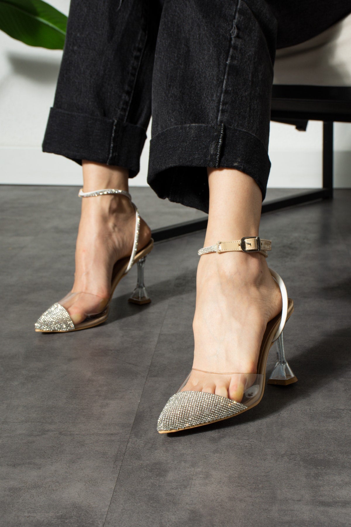 Ten Transparent Stone Women'S Evening Dress Heeled Shoes