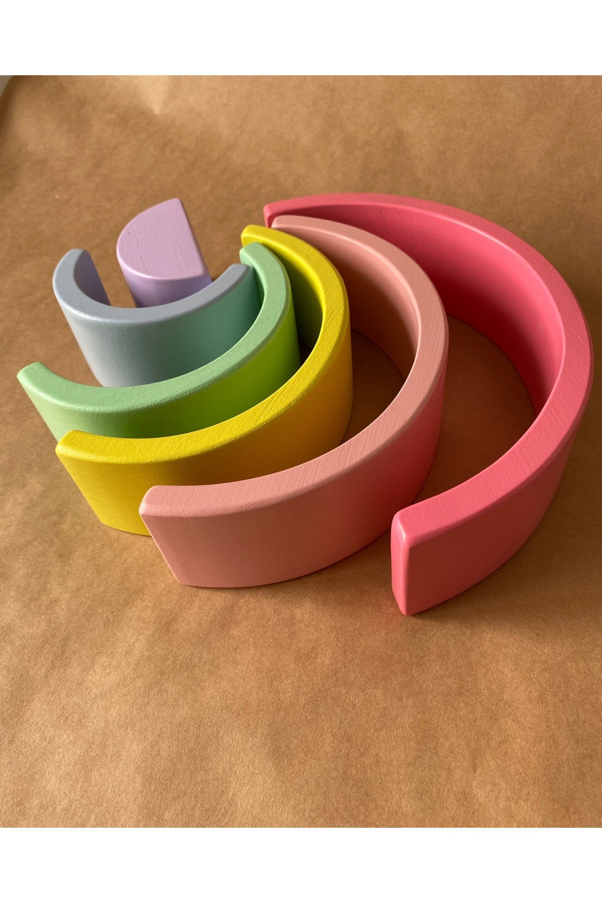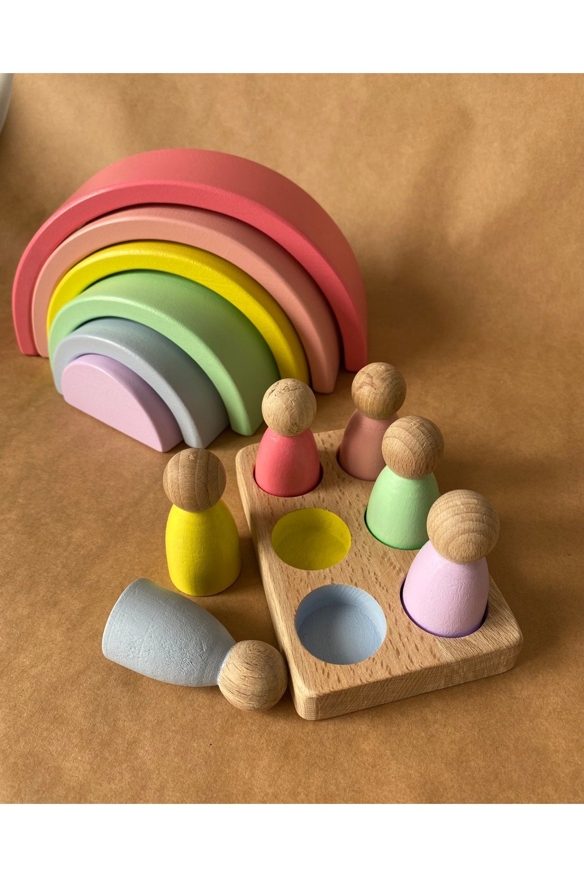 Waldorf 6 Piece Rainbow, 6 Pcs Peg Baby Tray Set Pastel Color Matching