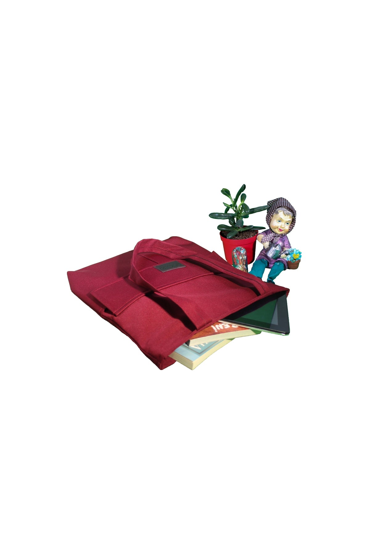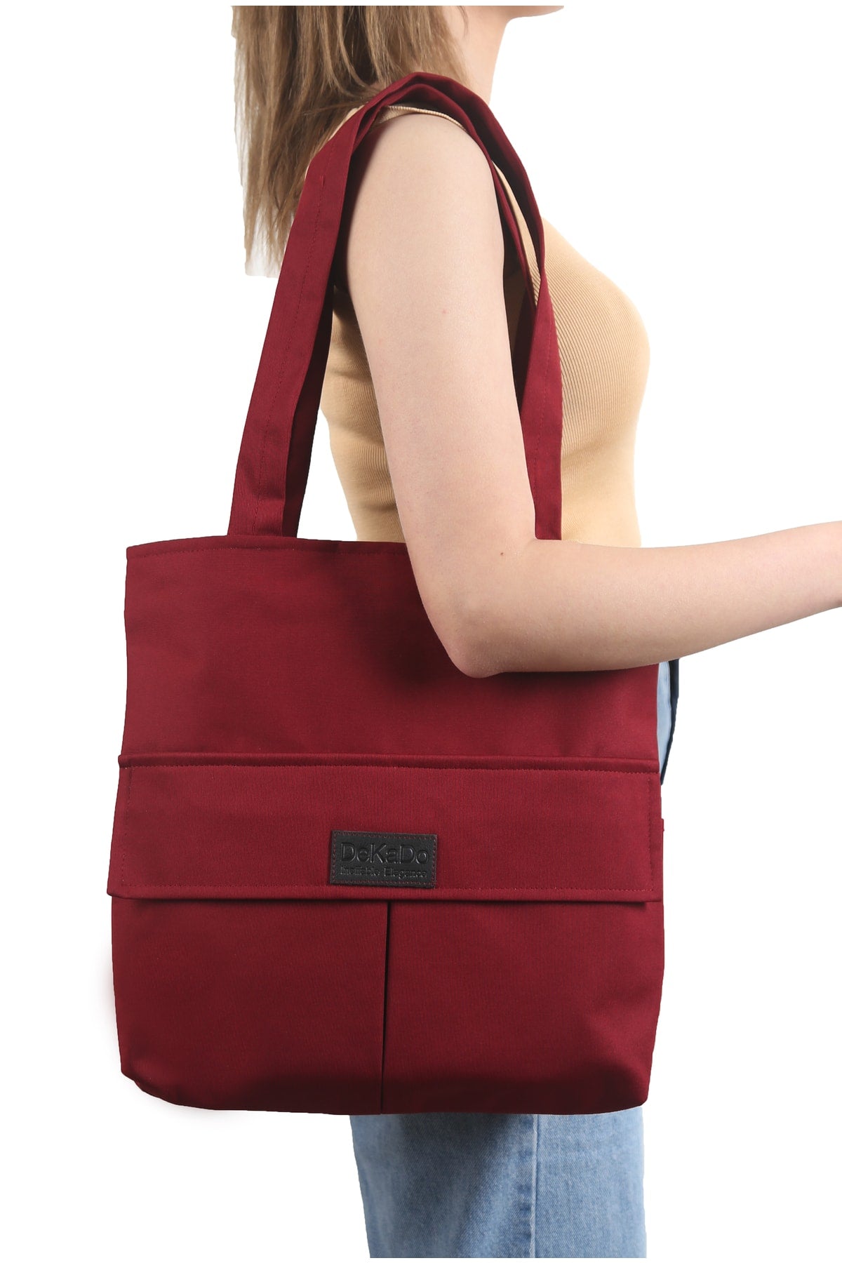 Women'S Claret Red Bag Zippered Hand And Shoulder Bag Canvas Fabric Tote Bag