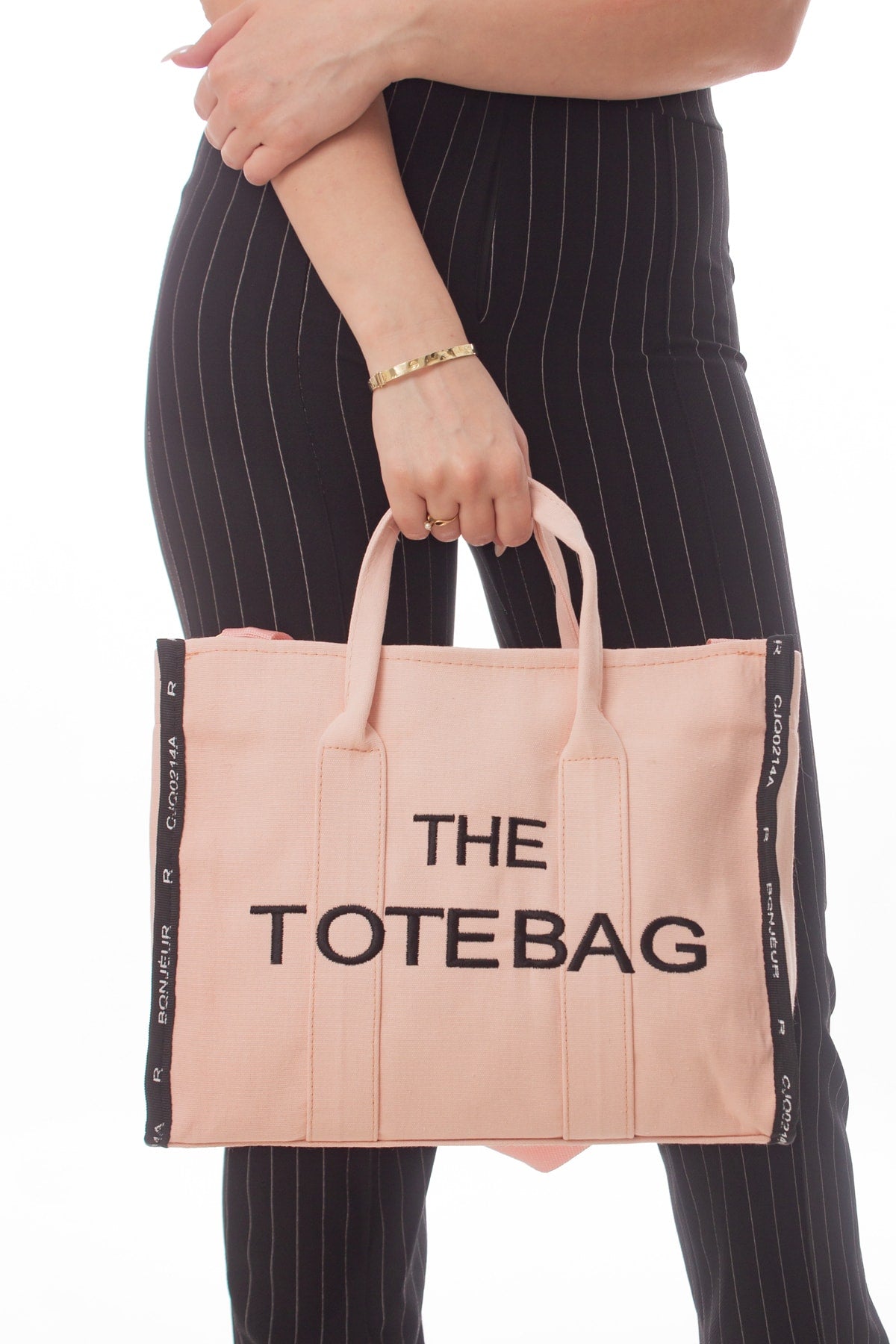 Women'S Powder Pink Tote Bag Canvas Long Strap Bag Shoulder Bag