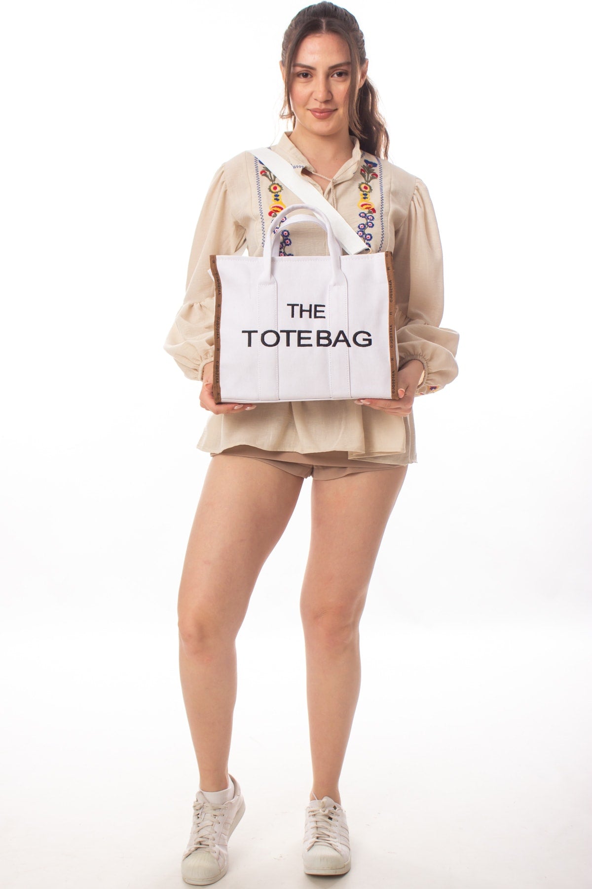 Women'S White Tan Striped Tote Bag Long Strap Bag And Shoulder Bag