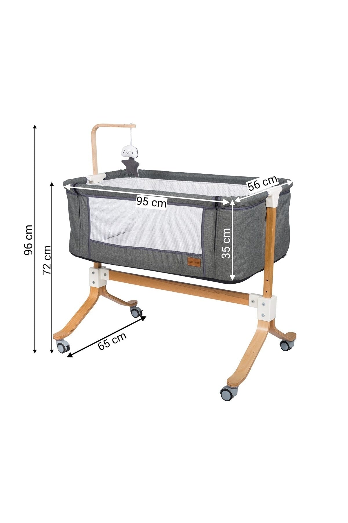 3-stage manually adjustable height - zippered side with the feature of being used as a mother's side - 360 degree 2 stops 2 moving wheels - 2 mobile mobiles with toys - 3.5 cm foam inner mattress - inner mattress size 90 x 50 cm - weight 6.5 kg - the top part from the floor is 88 cm, the length between the two legs is 67 cm, the width of the product from the outside is 98 cm, the height only to the bed part is 35 cm - box size: 60*15*96 Improved version for clearer understanding and better search visibility. Suitable for users seeking detailed and reliable product information.
