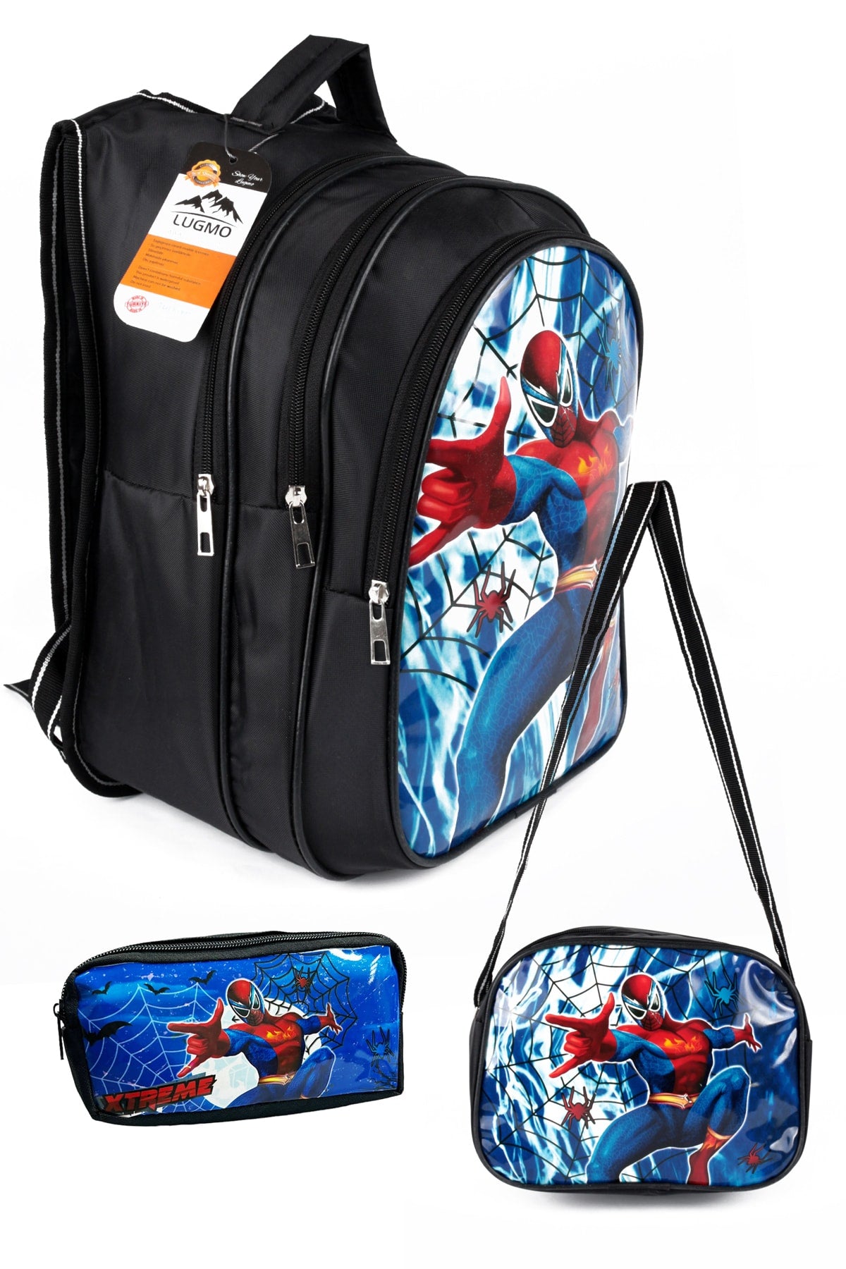 Backpack Set Middle School Primary School 3 Pockets Padded Spider Black